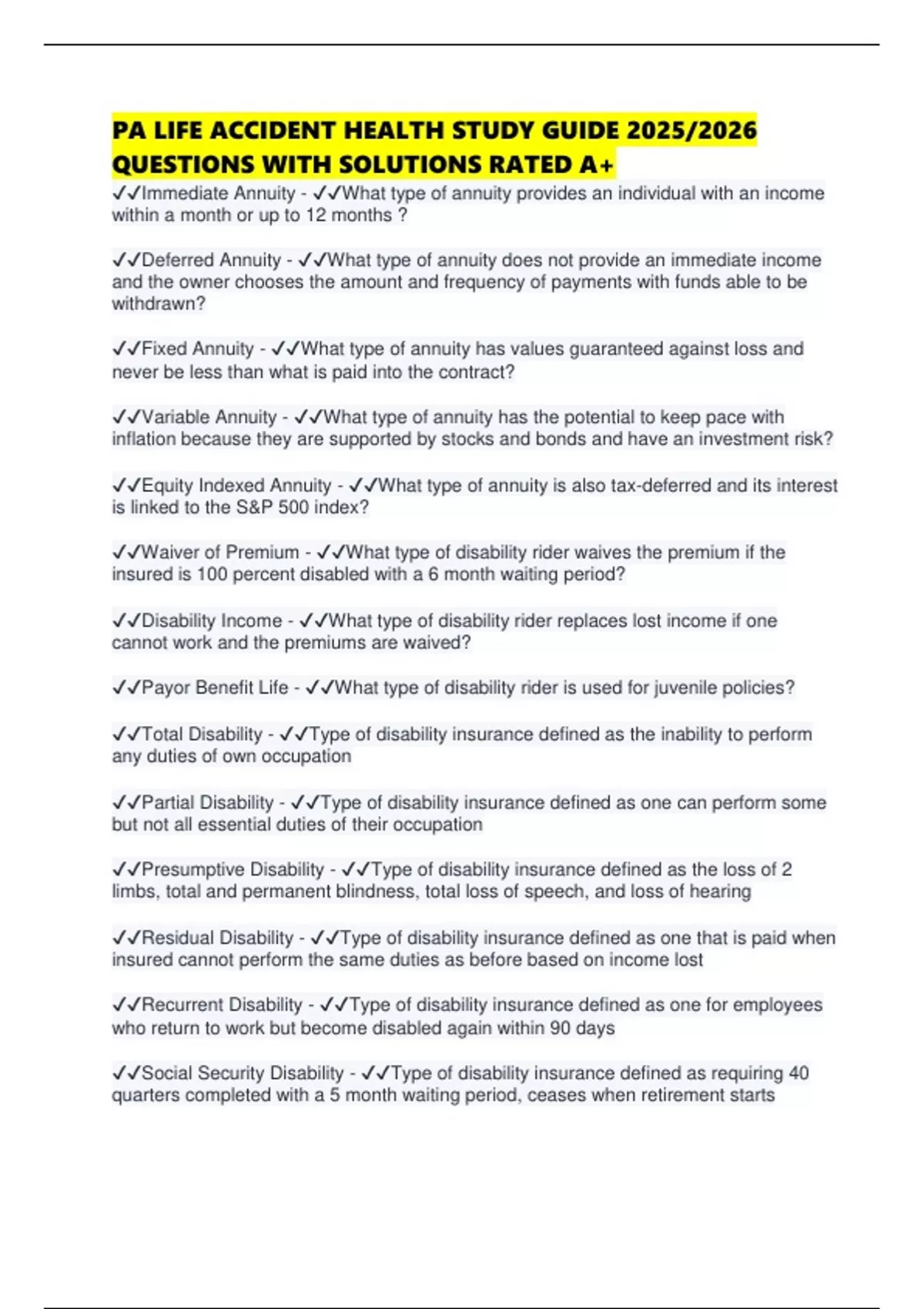 ✔✔Residual Disability - ✔✔Type of disability insurance defined as one that is paid when