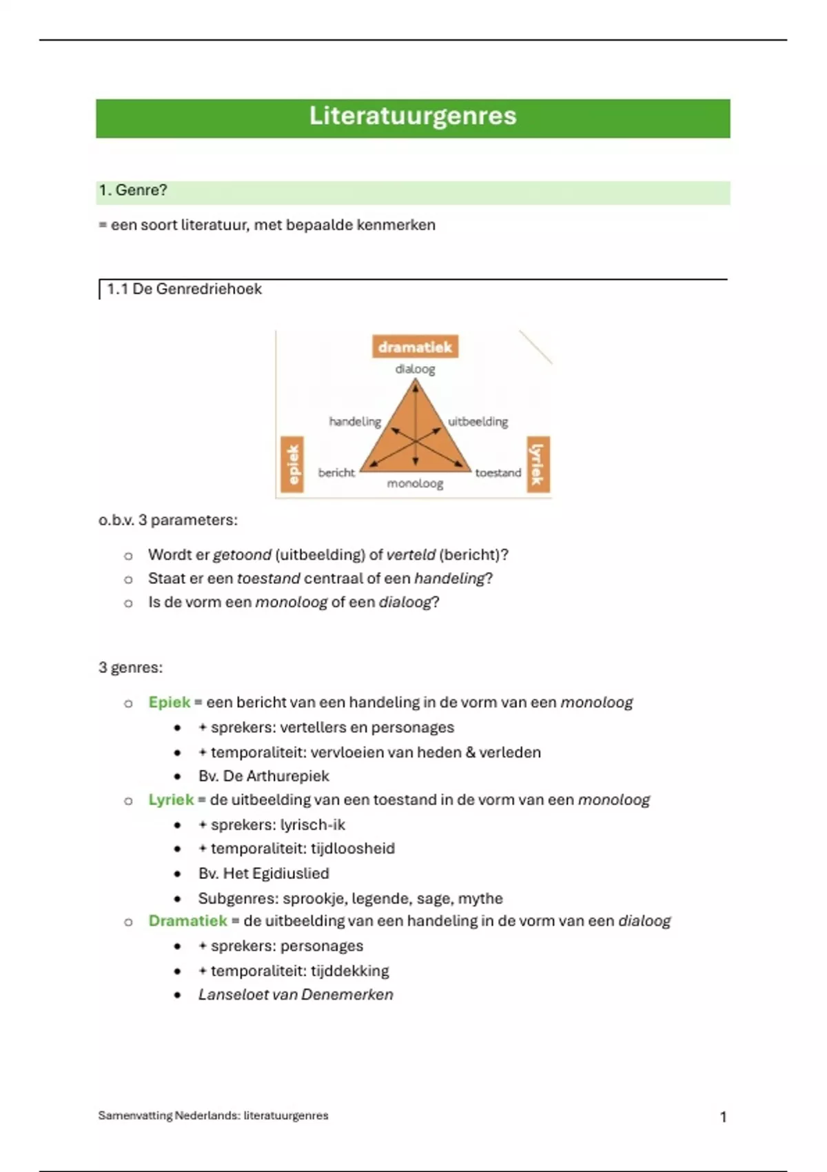 o Epiek = een bericht van een handeling in de vorm van een monoloog