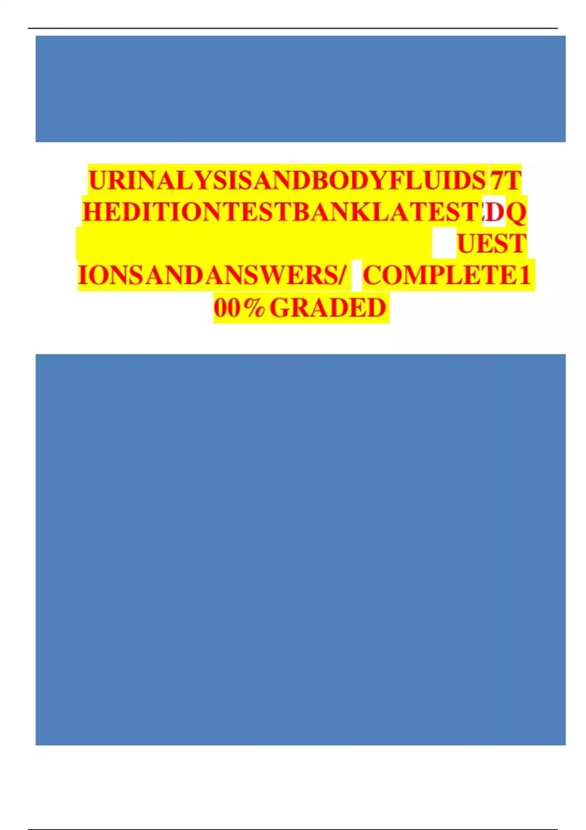 , URINALYSISANDBODYFLUIDS 7THEDITION TESTBANK l l