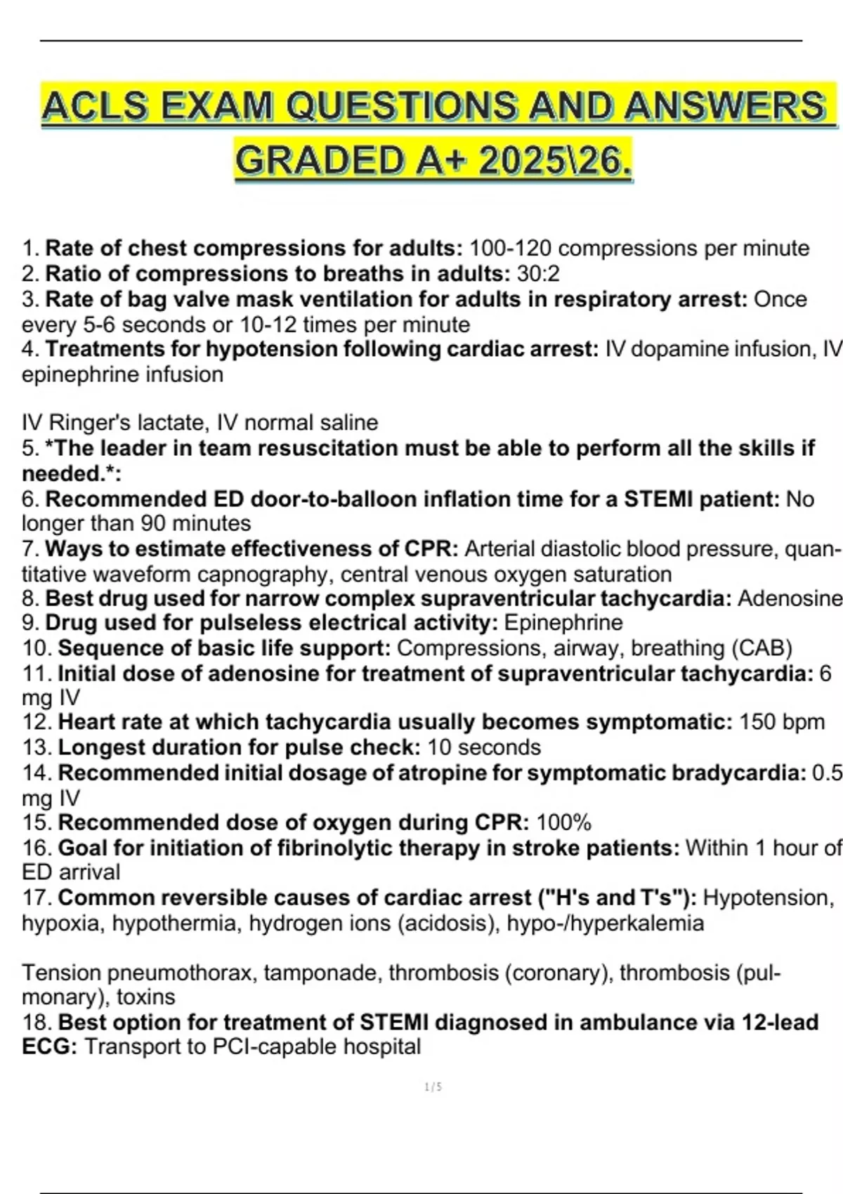 ACLS EXAM QUESTIONS AND ANSWERS