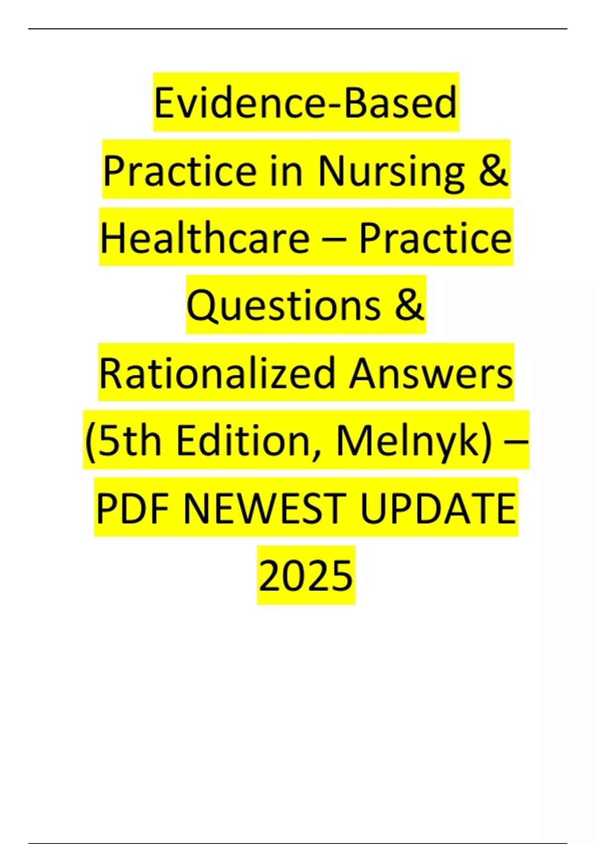 Evidence-Based Practice in Nursing & Healthcare – Practice Questions & Rationalized Answers (5th Edition, Melnyk) –PDF NEWEST UPDATE 2025