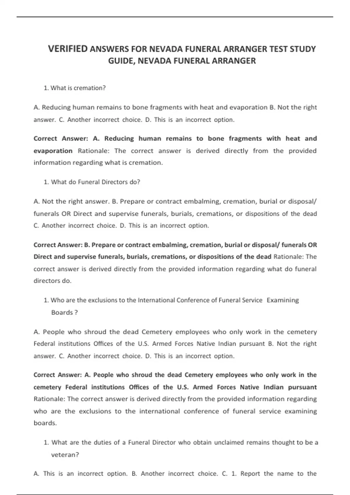 A. Not the right answer. B. Prepare or contract embalming, cremation, burial or disposal/