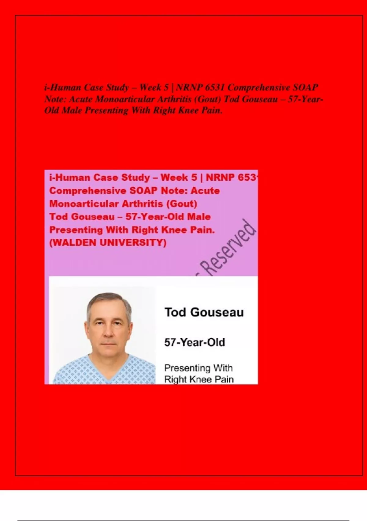 Note: Acute Monoarticular Arthritis (Gout) Tod Gouseau – 57-Year-