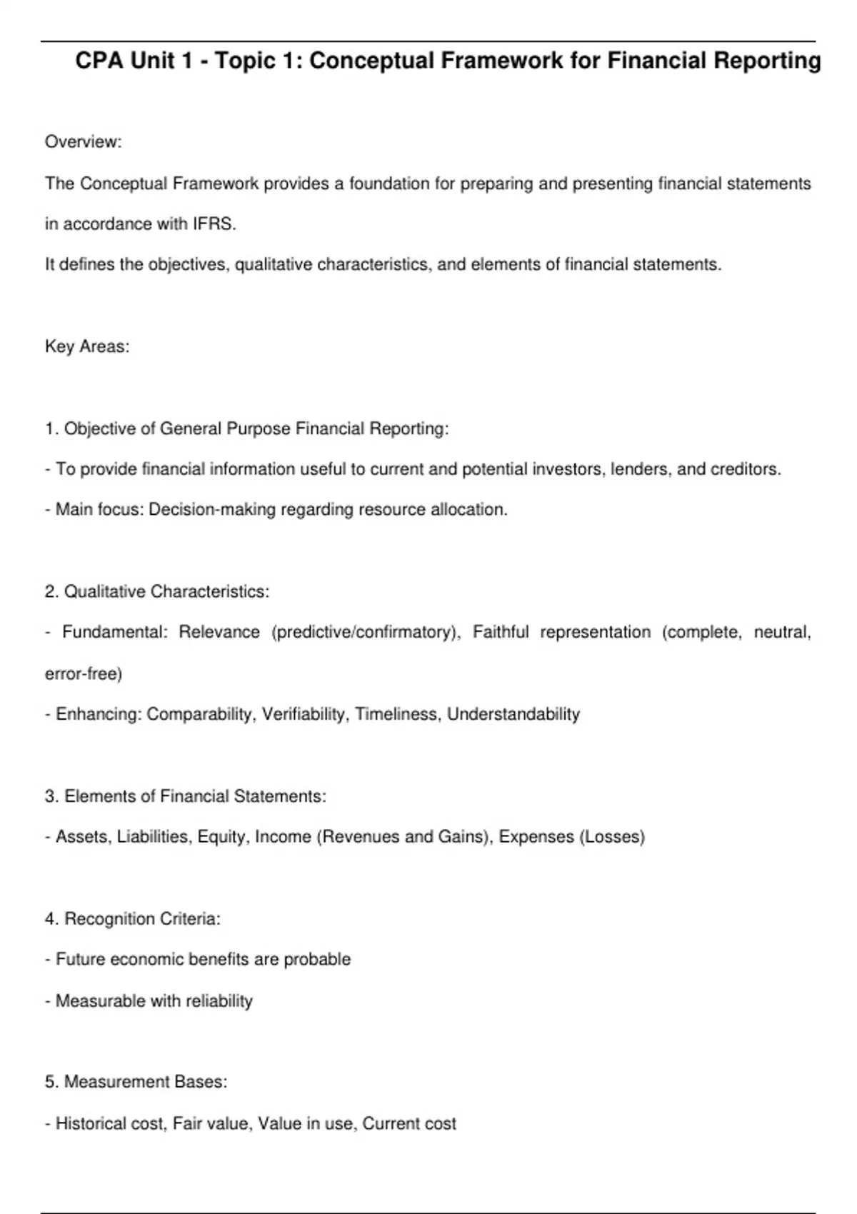 CPA Unit 1 - Topic 1: Conceptual Framework for Financial Reporting