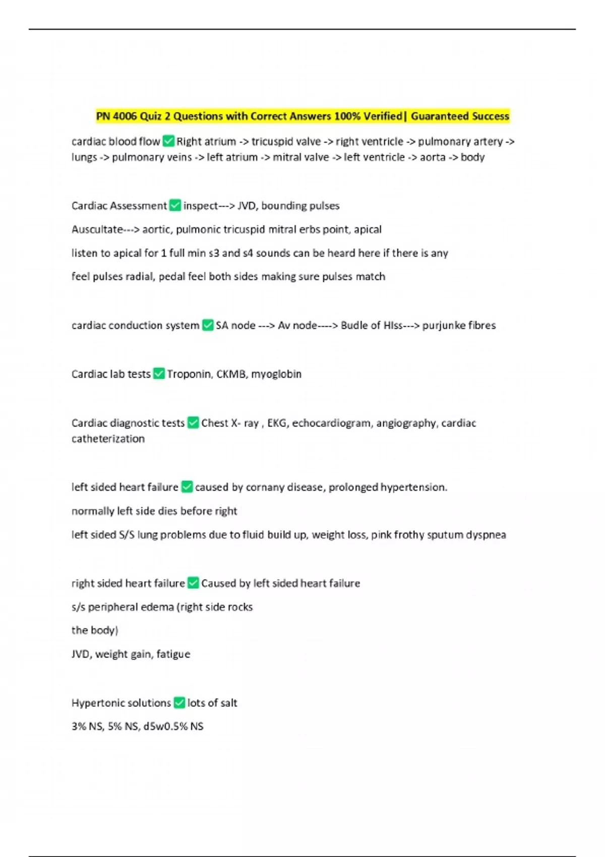 PN 4006 Quiz 2 Questions with Correct Answers 100% Verified| Guaranteed Success