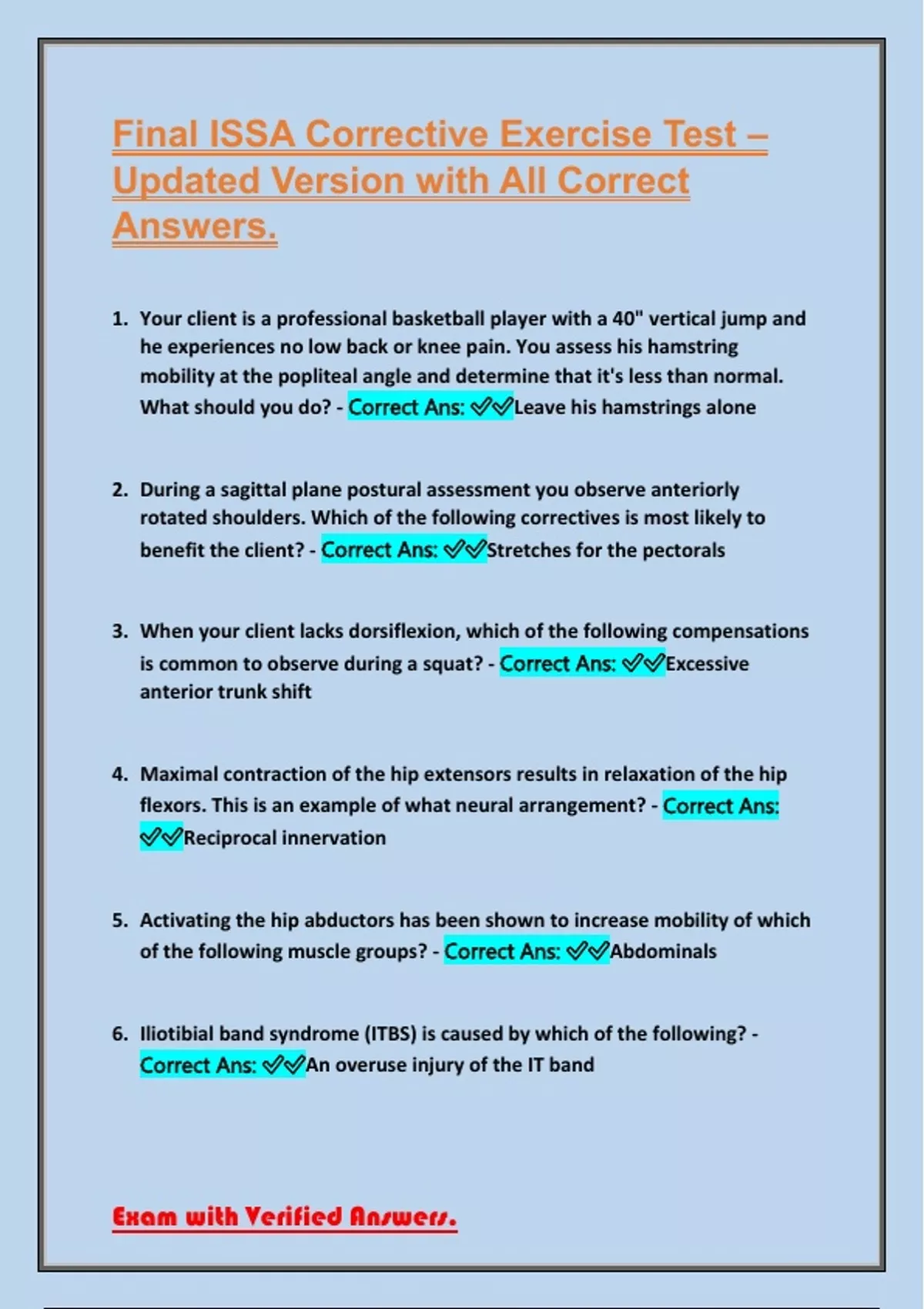 Exam with Verified Answers.