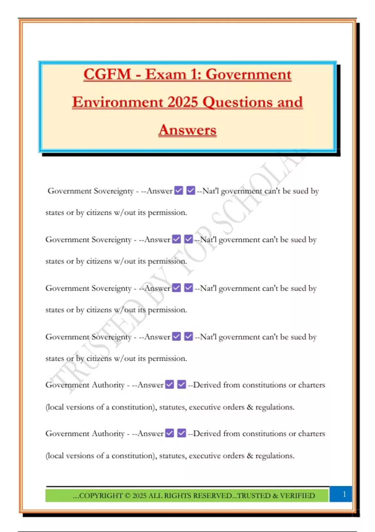 CGFM - Exam 1: Government