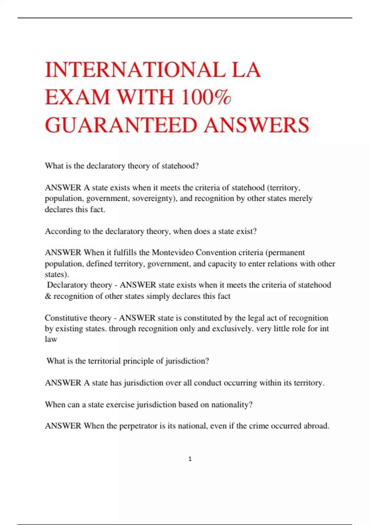 Declaratory theory - ANSWER state exists when it meets the criteria of statehood