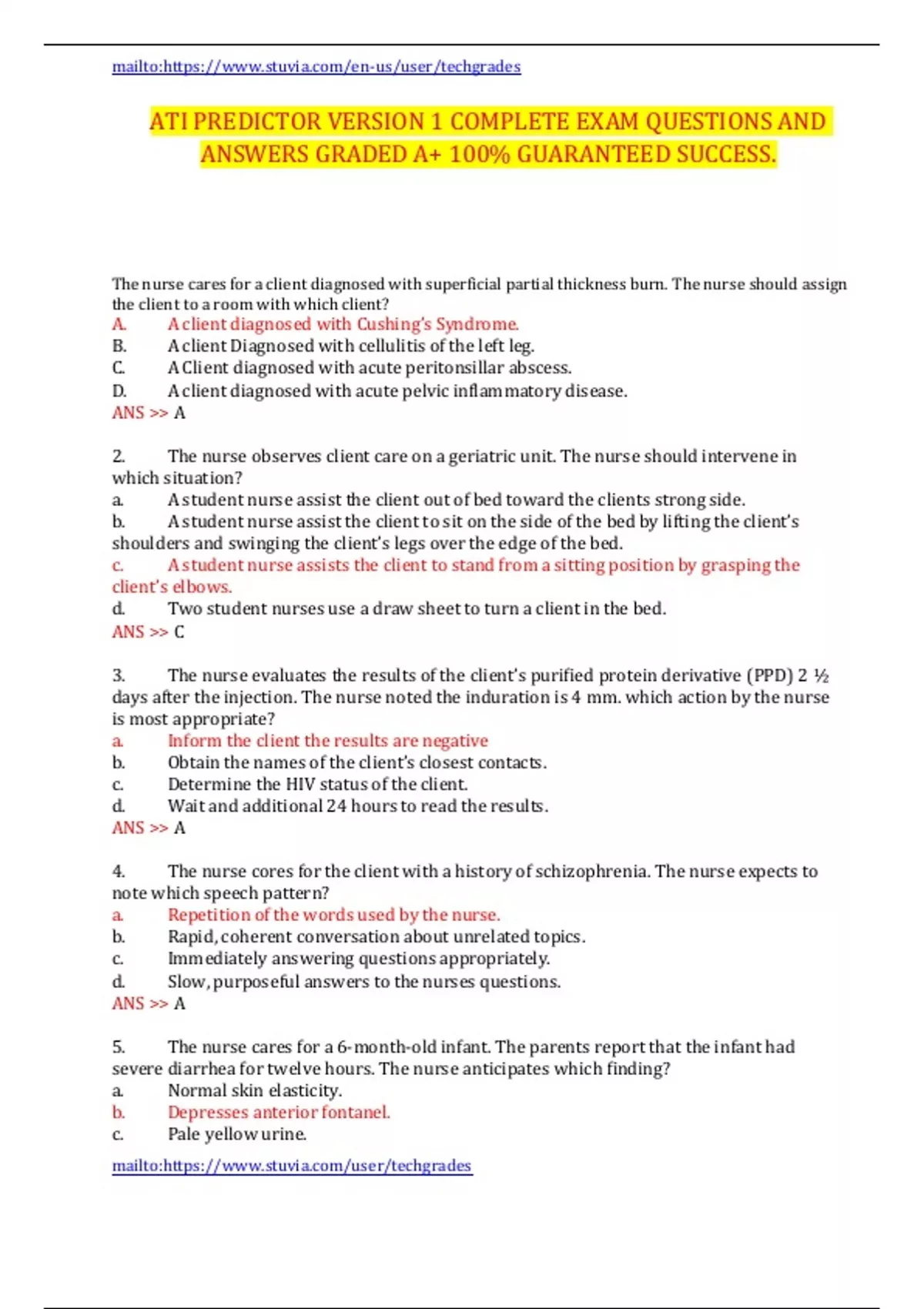 ATI PREDICTOR VERSION 1 COMPLETE EXAM QUESTIONS AND