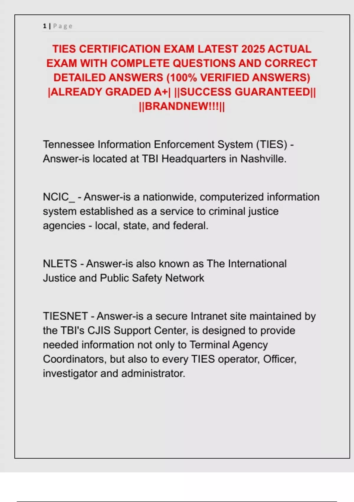 TIES CERTIFICATION EXAM LATEST 2025 ACTUAL