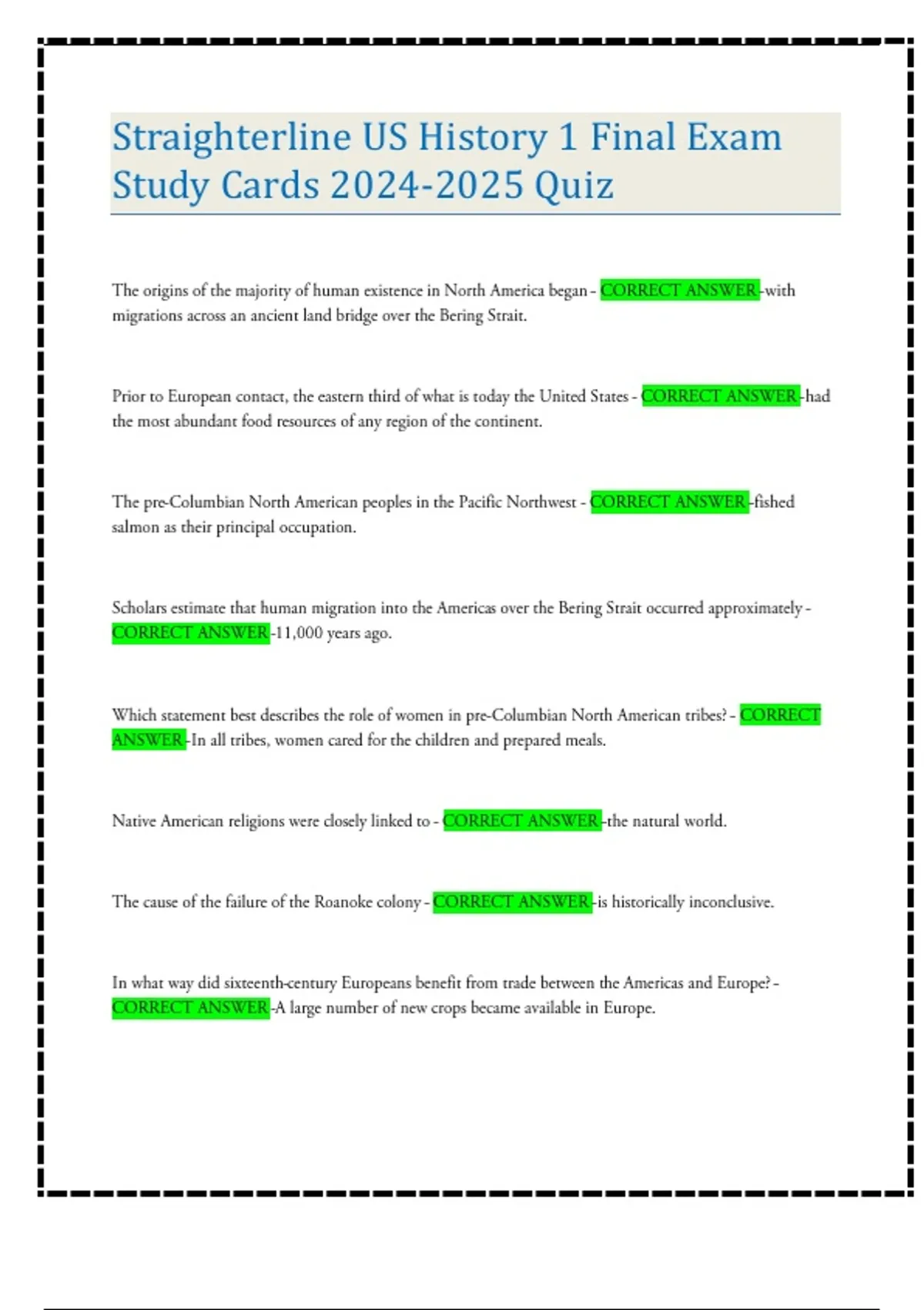 Straighterline US History 1 Final Exam Study Cards Quiz