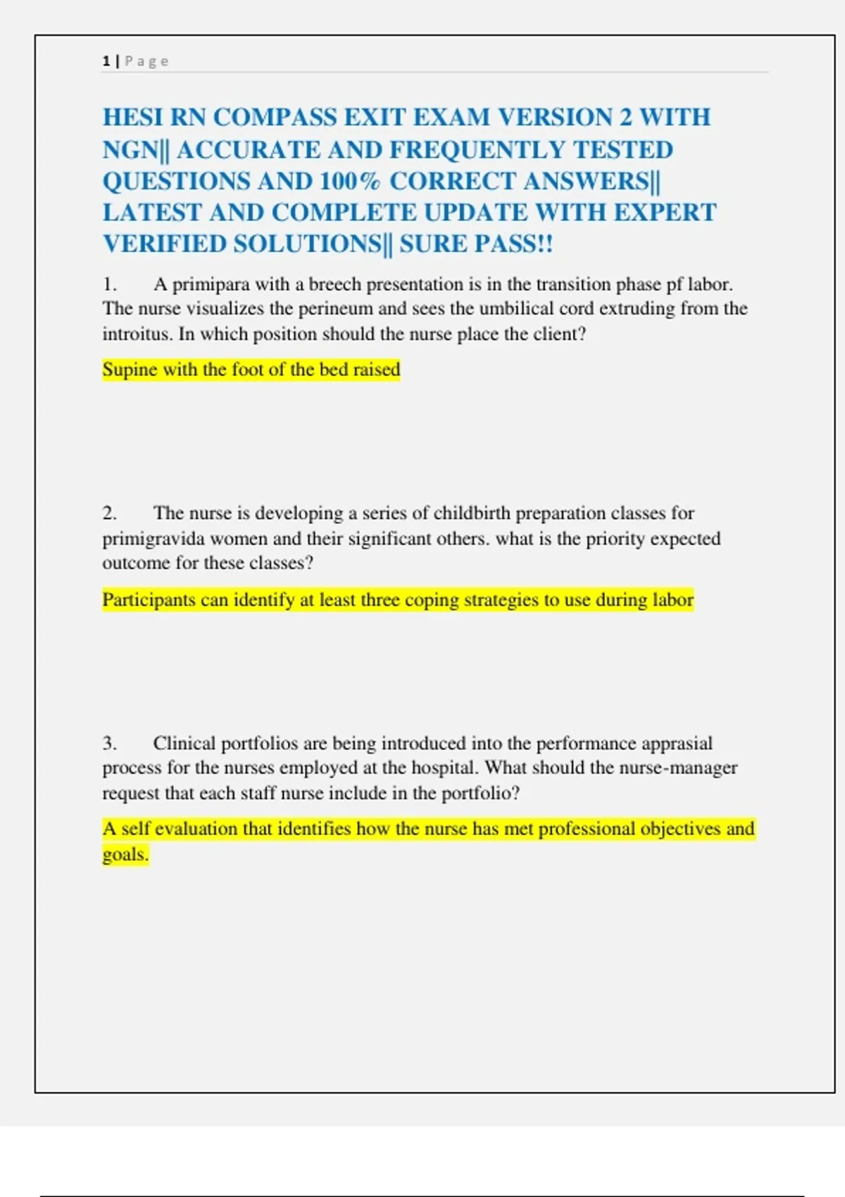 HESI RN COMPASS EXIT EXAM VERSION 2 WITH