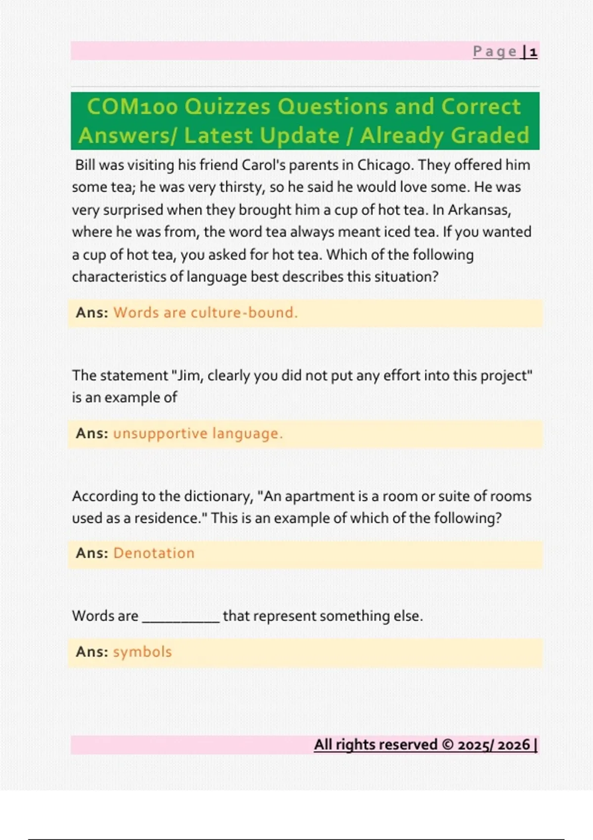COM100 Quizzes Questions and Correct