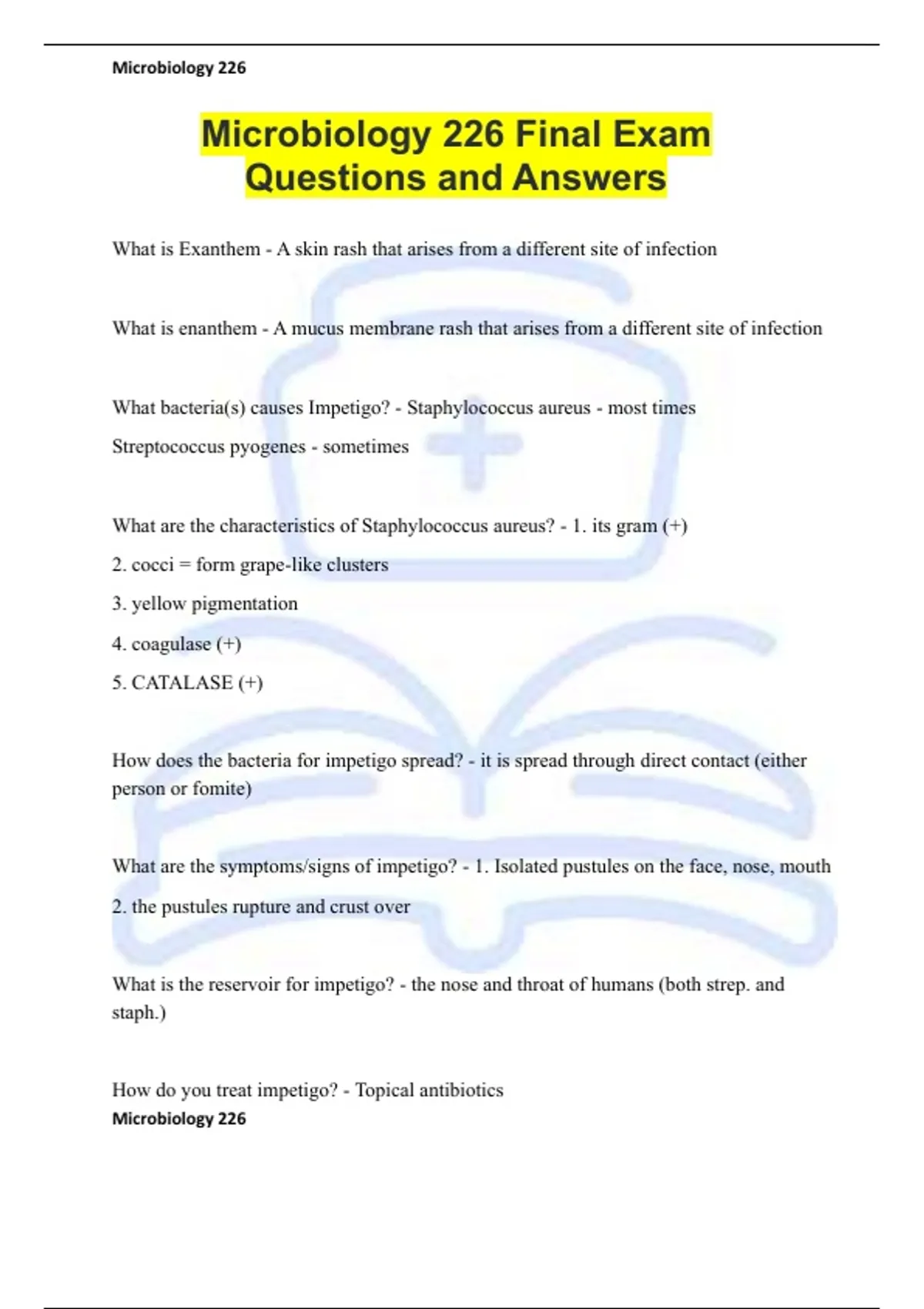 Microbiology 226 Final Exam