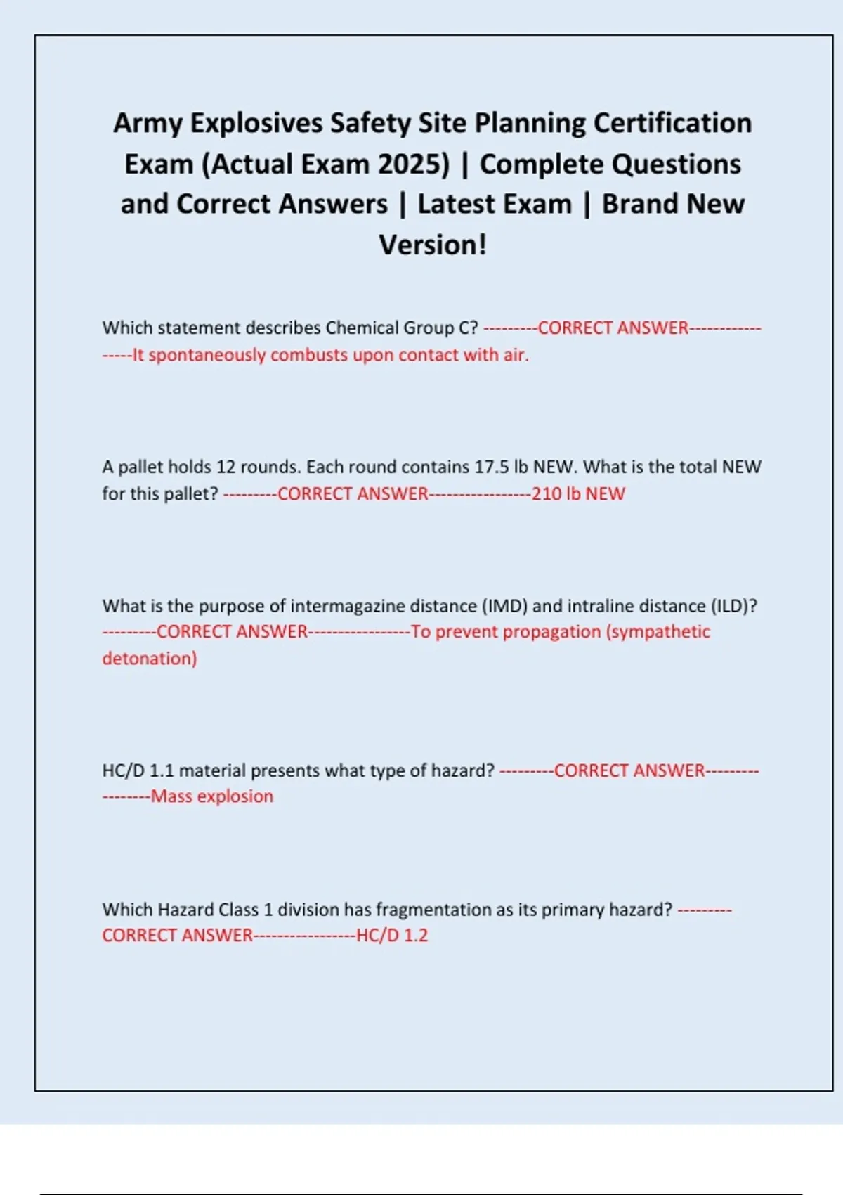 HC/D 1.1 material presents what type of hazard? ---------CORRECT ANSWER---------
