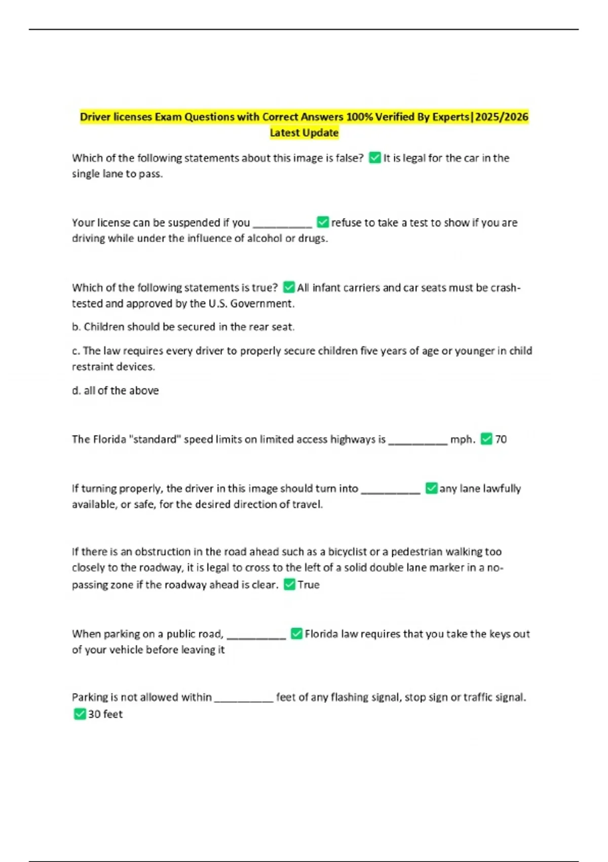 Driver licenses Exam Questions with Correct Answers 100% Verified By Experts|2025/2026 Latest Update