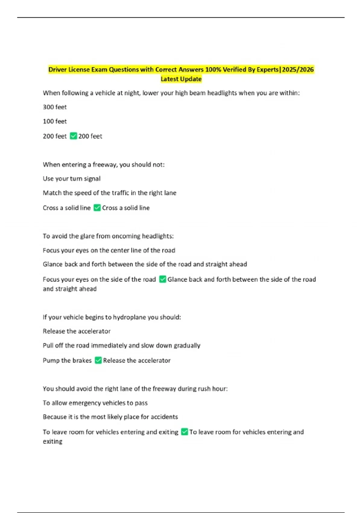 Driver License Exam Questions with Correct Answers 100% Verified By Experts|2025/2026 Latest Update