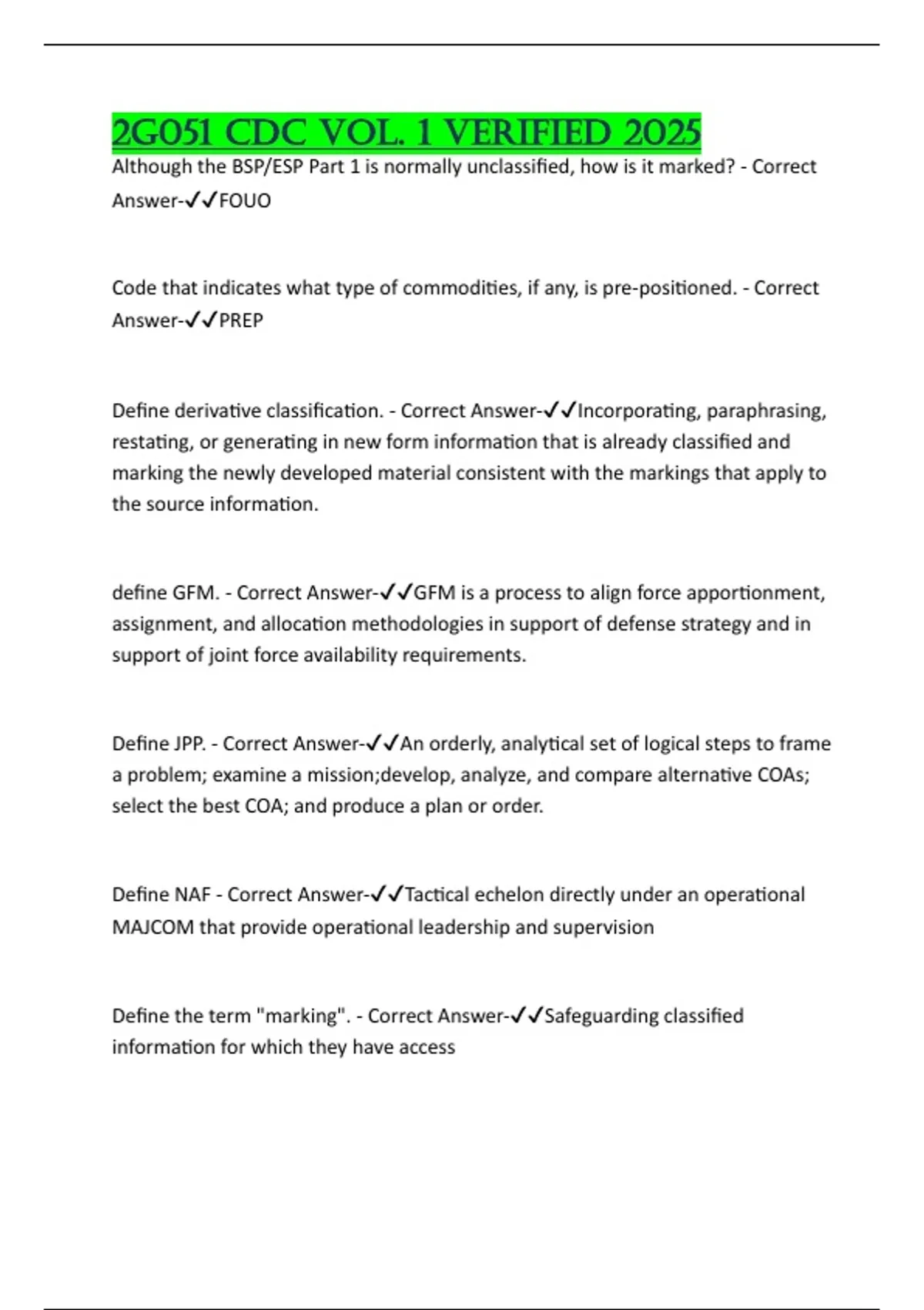 Define the term "marking". - Correct Answer-✔✔Safeguarding classified