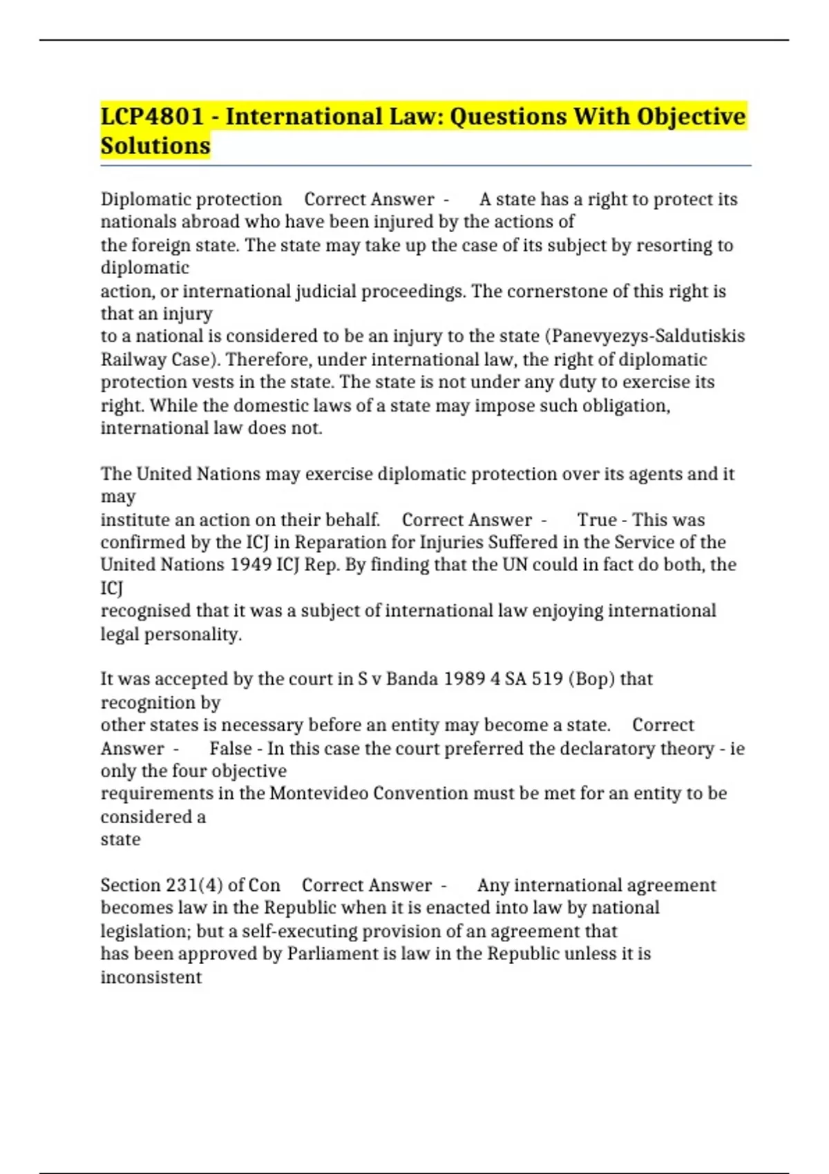 Diplomatic protection Correct Answer - A state has a right to protect its