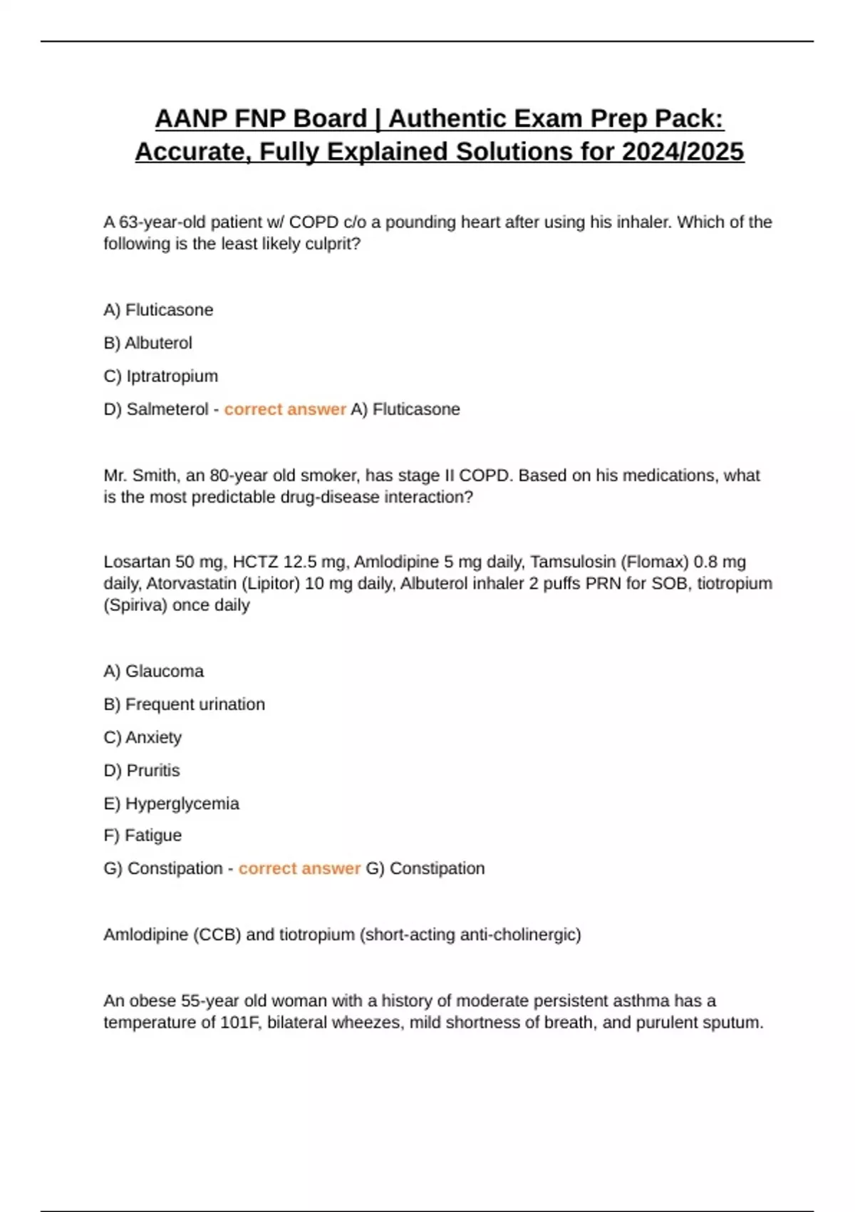 D) Salmeterol - correct answer A) Fluticasone