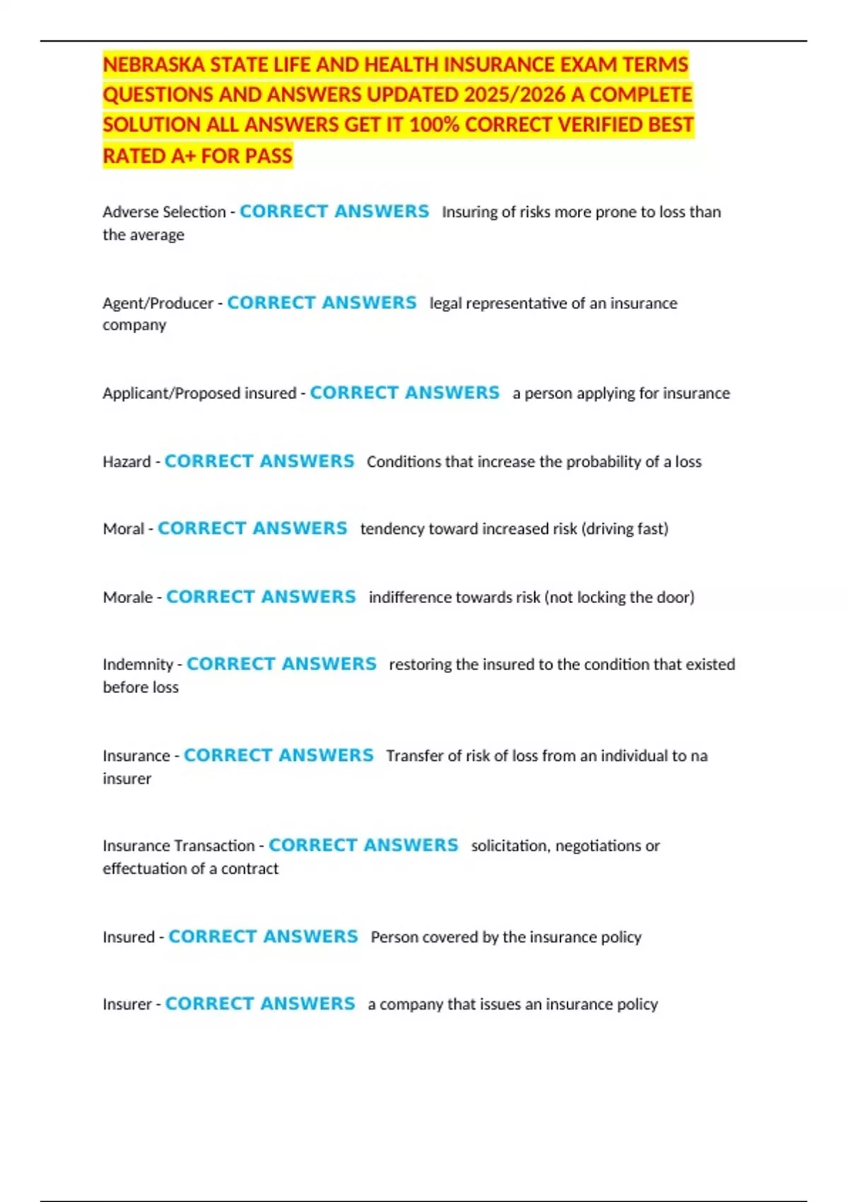 , NEBRASKA STATE LIFE AND HEALTH INSURANCE EXAM TERMS