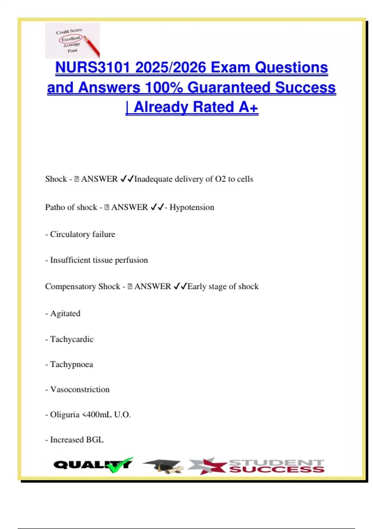 Compensatory Shock - 🧠 ANSWER ✔✔Early stage of shock