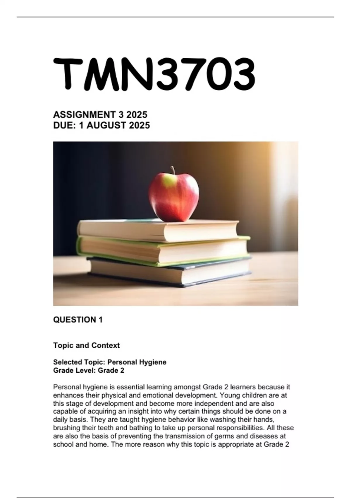 Personal hygiene is essential learning amongst Grade 2 learners because it