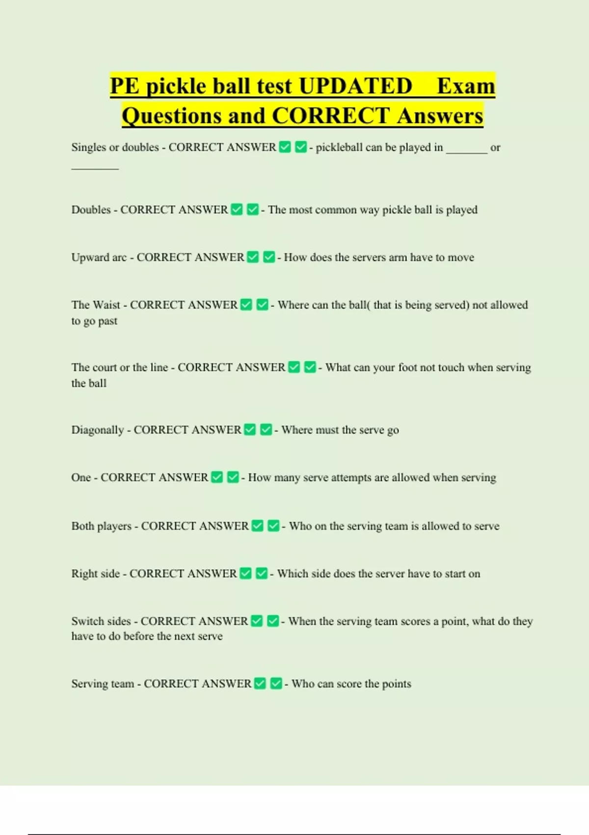 Singles or doubles - CORRECT ANSWER - pickleball can be played in _______ or