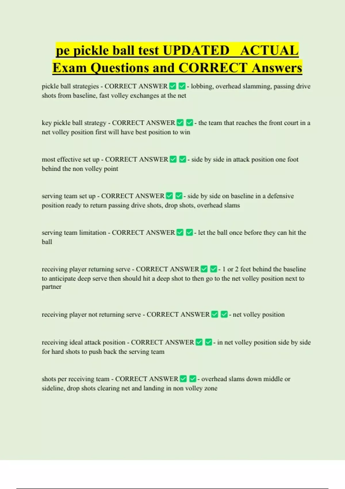 key pickle ball strategy - CORRECT ANSWER - the team that reaches the front court in a