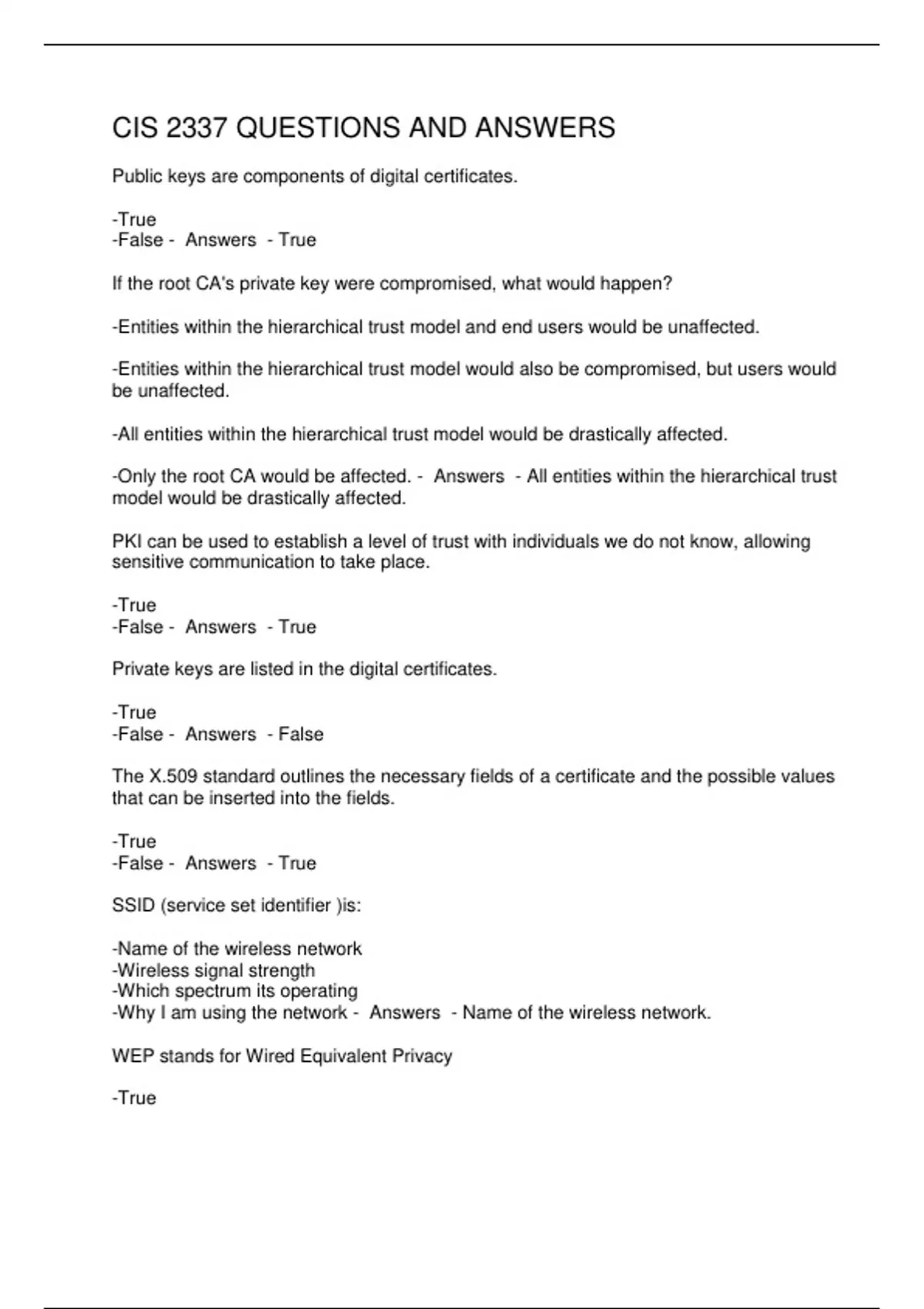 -False - Answers - True