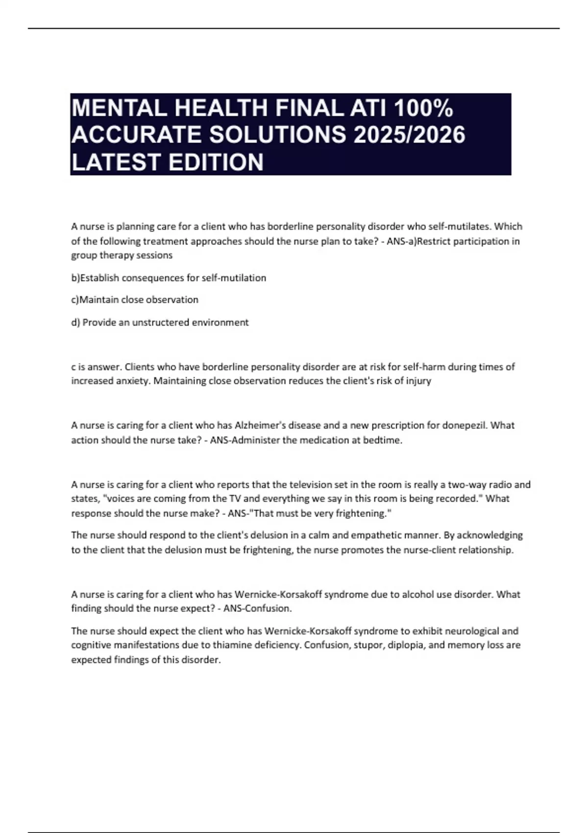 c is answer. Clients who have borderline personality disorder are at risk for self-harm during times of