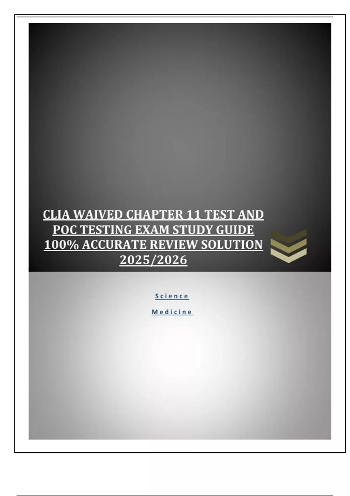 CLIA WAIVED CHAPTER 11 TEST AND POC TESTING EXAM STUDY GUIDE 100% ACCURATE REVIEW SOLUTION 2025/2026 Where is one likely to find Beta-hCG first in the following body fluids? - ANS-Urine Serum What is the universal biohazard color? - ANS-Red The purpose of holding a capillary tube horizontal while drawing blood is to - ANS-Prevent air bubbles Which of the following are important when preparing a PBS? - ANS-A single layer of RBCs A lancet should be used - ANS-On the non-dominant hand ring finger pinky side The duties of a CCMA include - ANS-Greeting and instructing patients Where should rapid streptococcal specimen be collected? - ANS- Continues...
