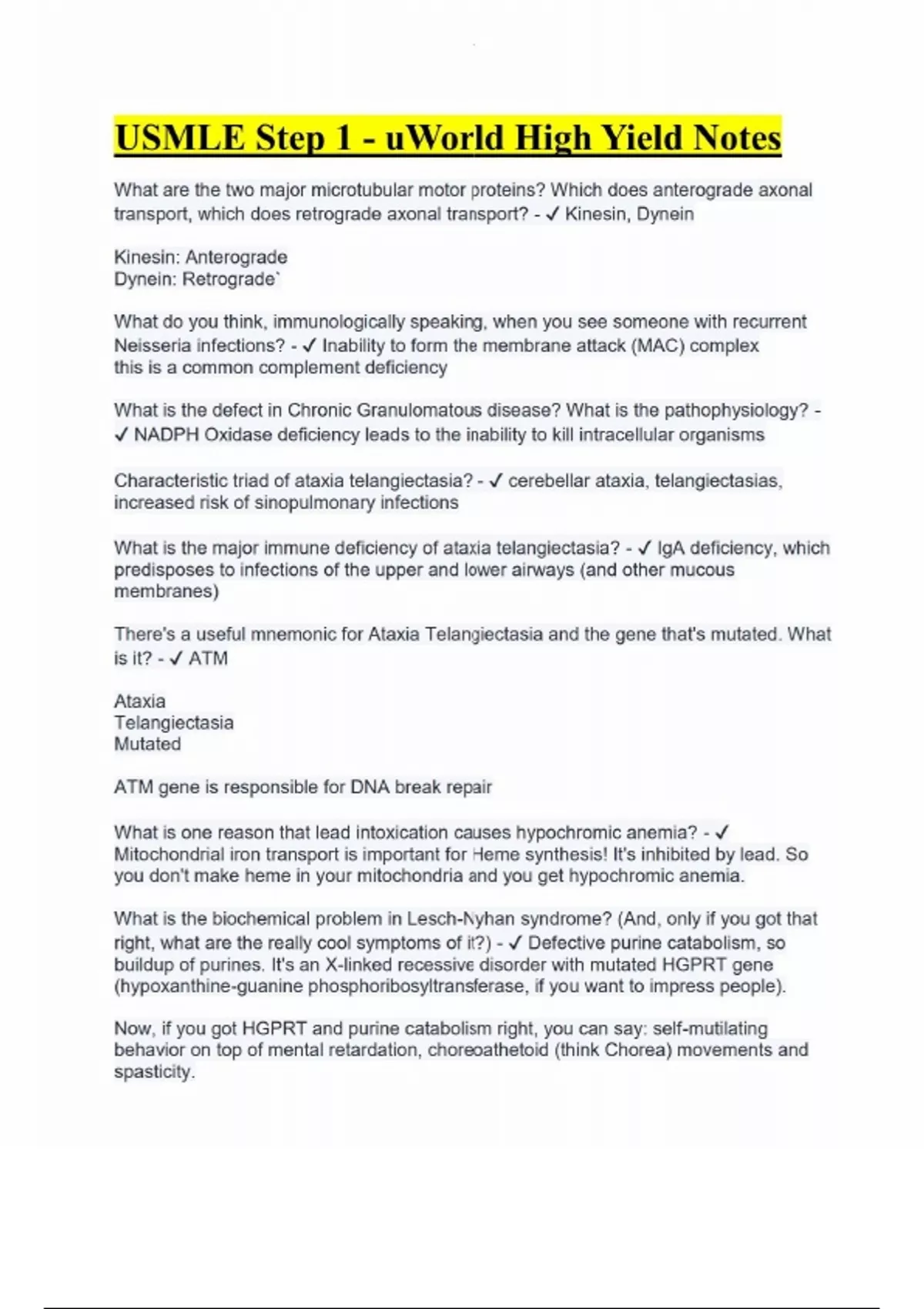 USMLE Step 1 - uWorld High Yield Notes