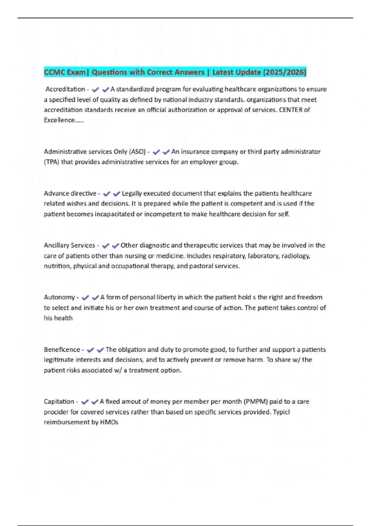 CCMC Exam| Questions with Correct Answers | Latest Update (2025/2026)