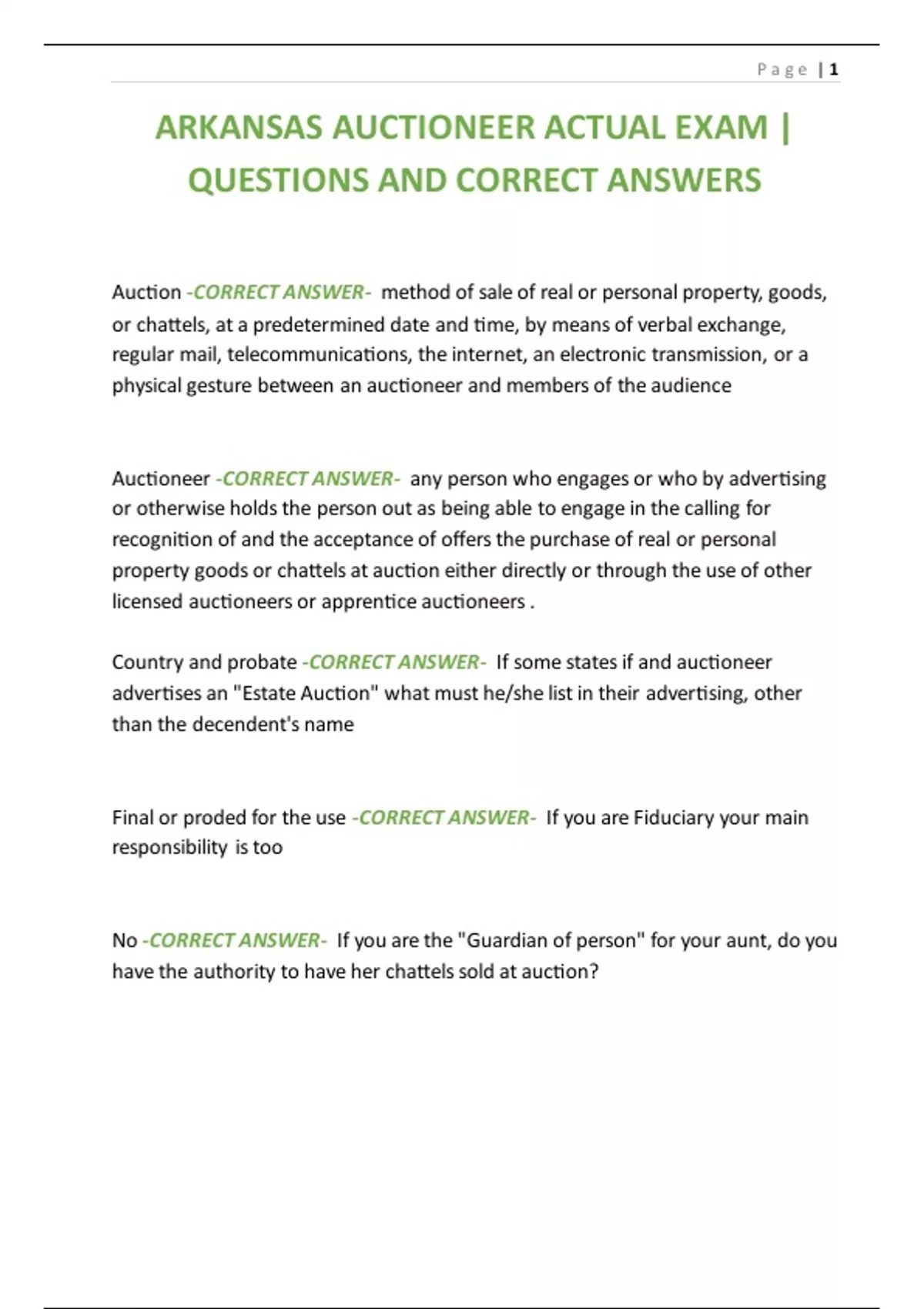 ARKANSAS AUCTIONEER ACTUAL EXAM |