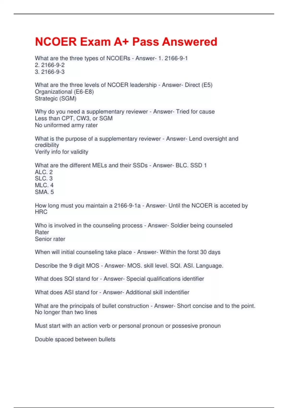 What are the three types of NCOERs - Answer- 1. 2166-9-1