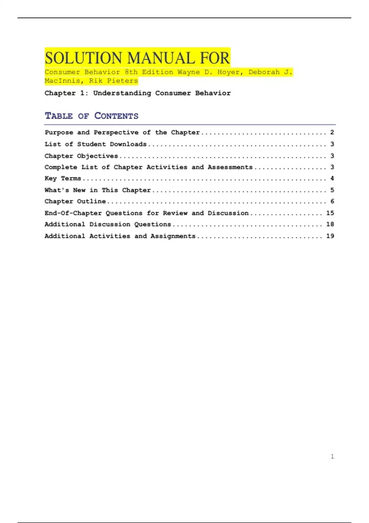Solution Manual for Consumer Behavior 8th Edition by Wayne Hoyer , ISBN: 9780357721292 |All Chapters Verified| Guide A+
