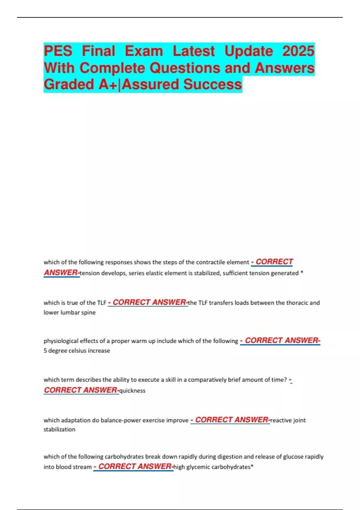 PES Final Exam Latest Update 2025 With Complete Questions and Answers Graded A+|Assured Success