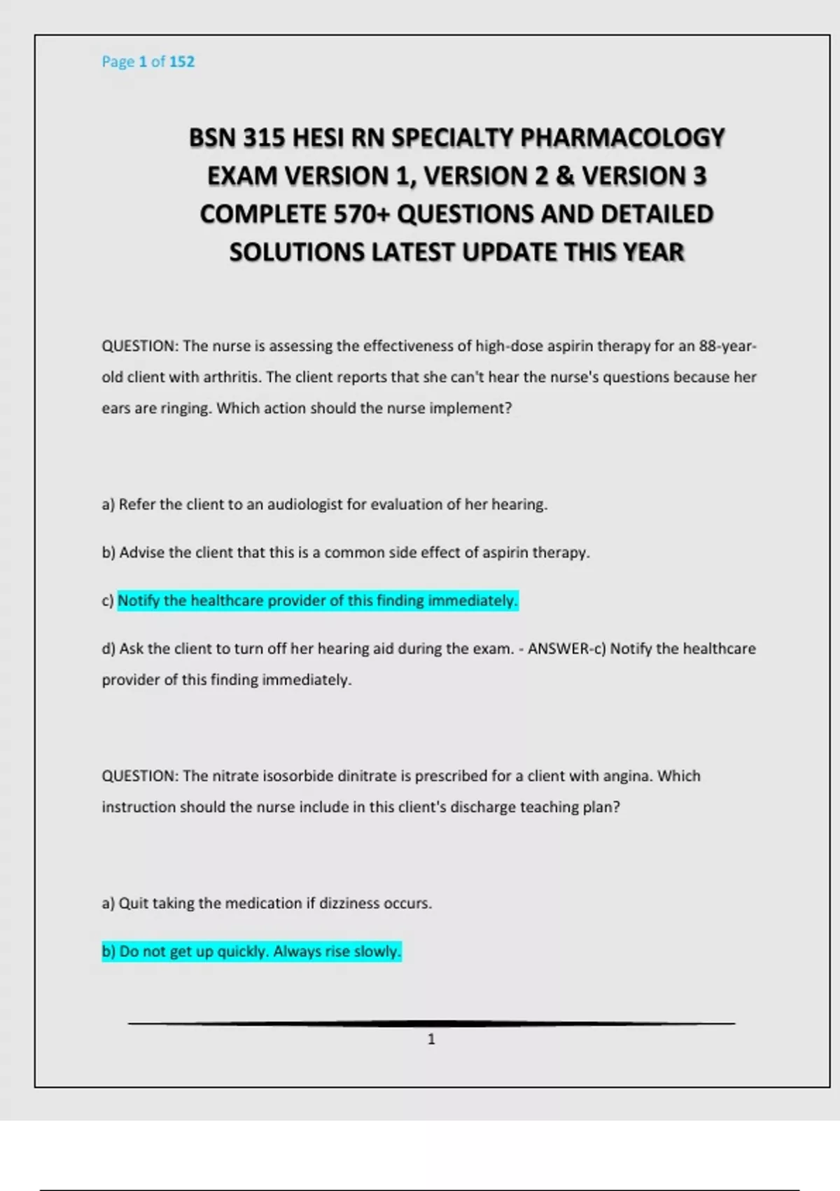 BSN 315 HESI RN SPECIALTY PHARMACOLOGY