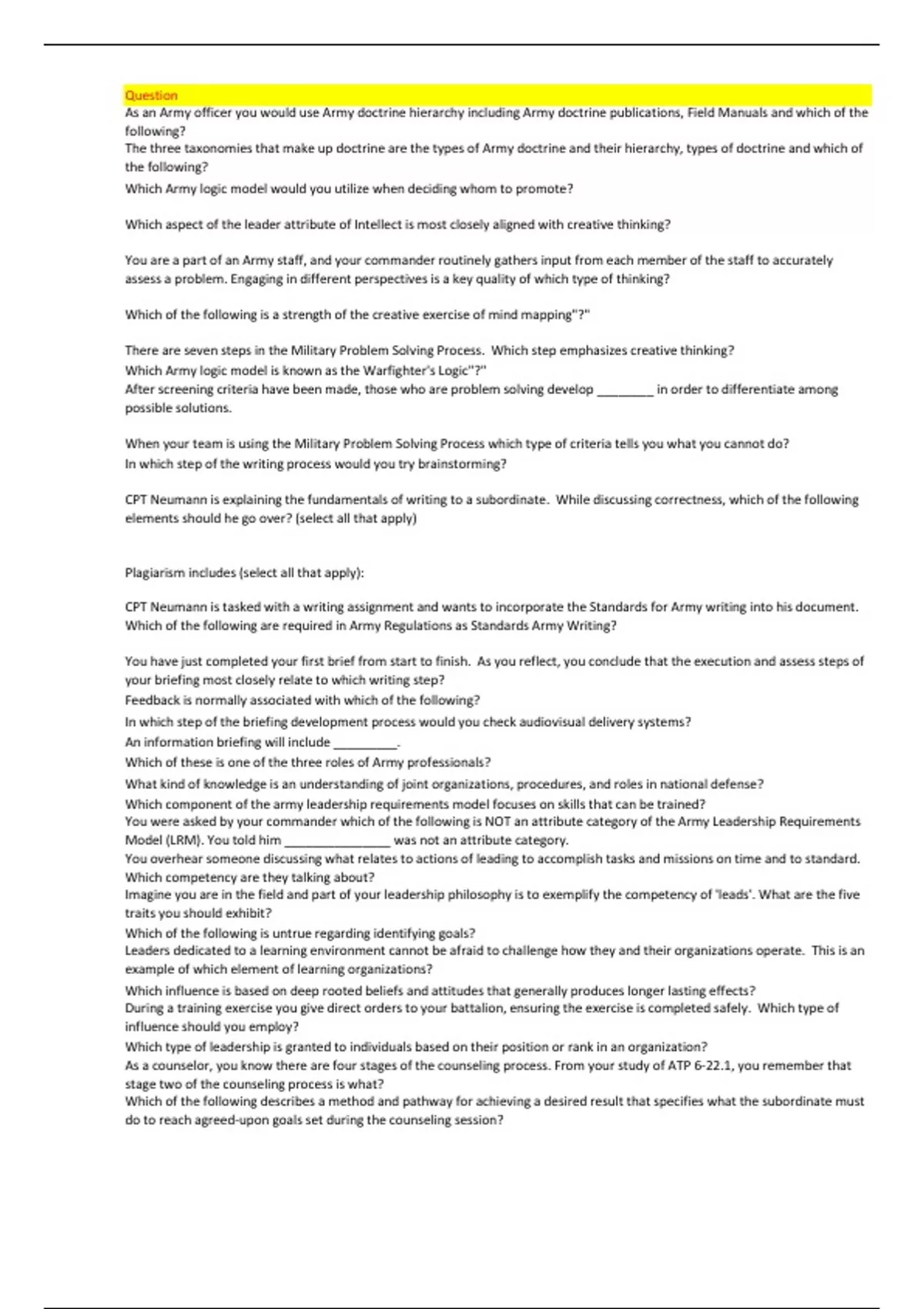 When preparing read ahead materials for your subordinate leaders before Army Doctrine professional development, you must