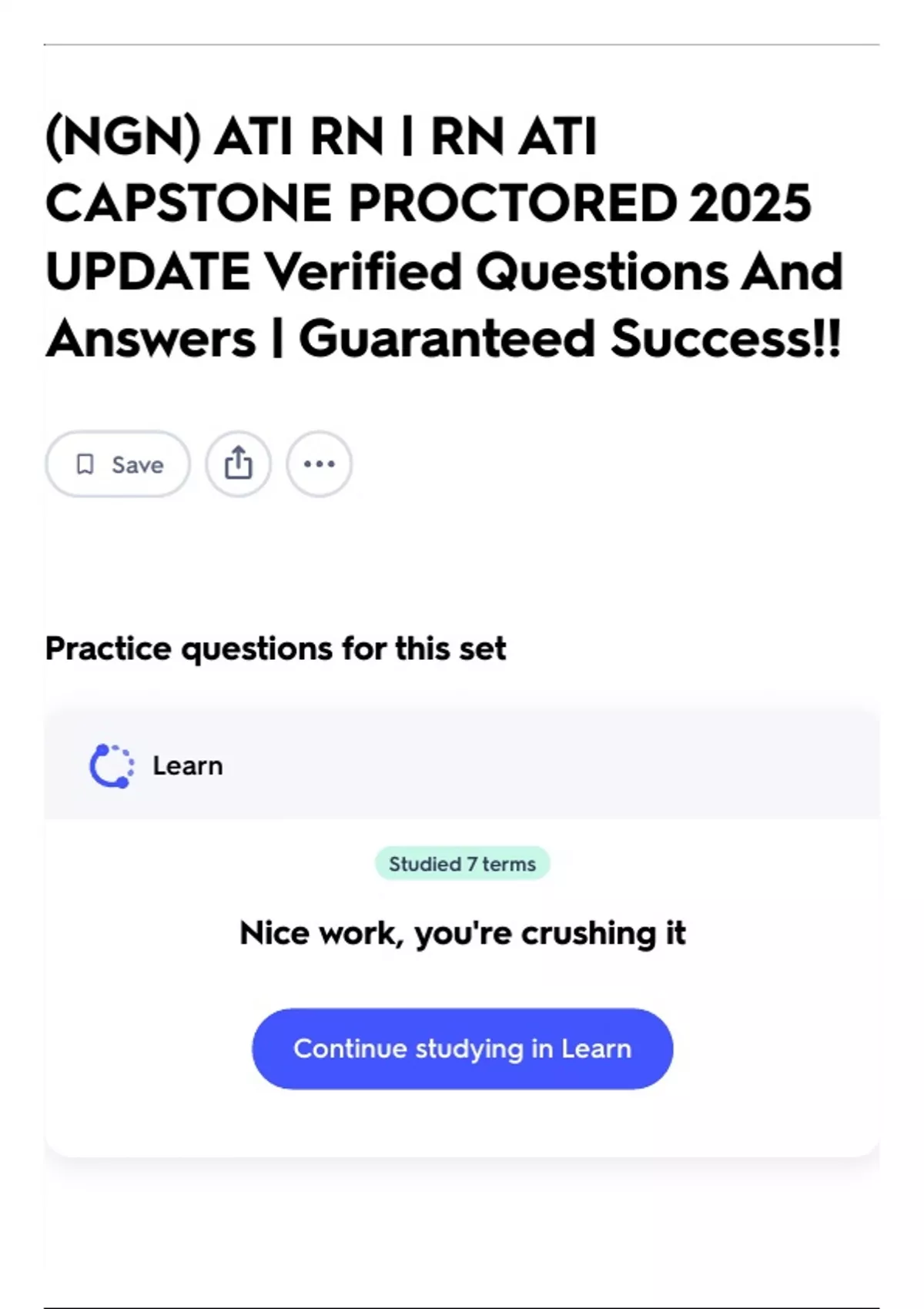 Continue studying in Learn