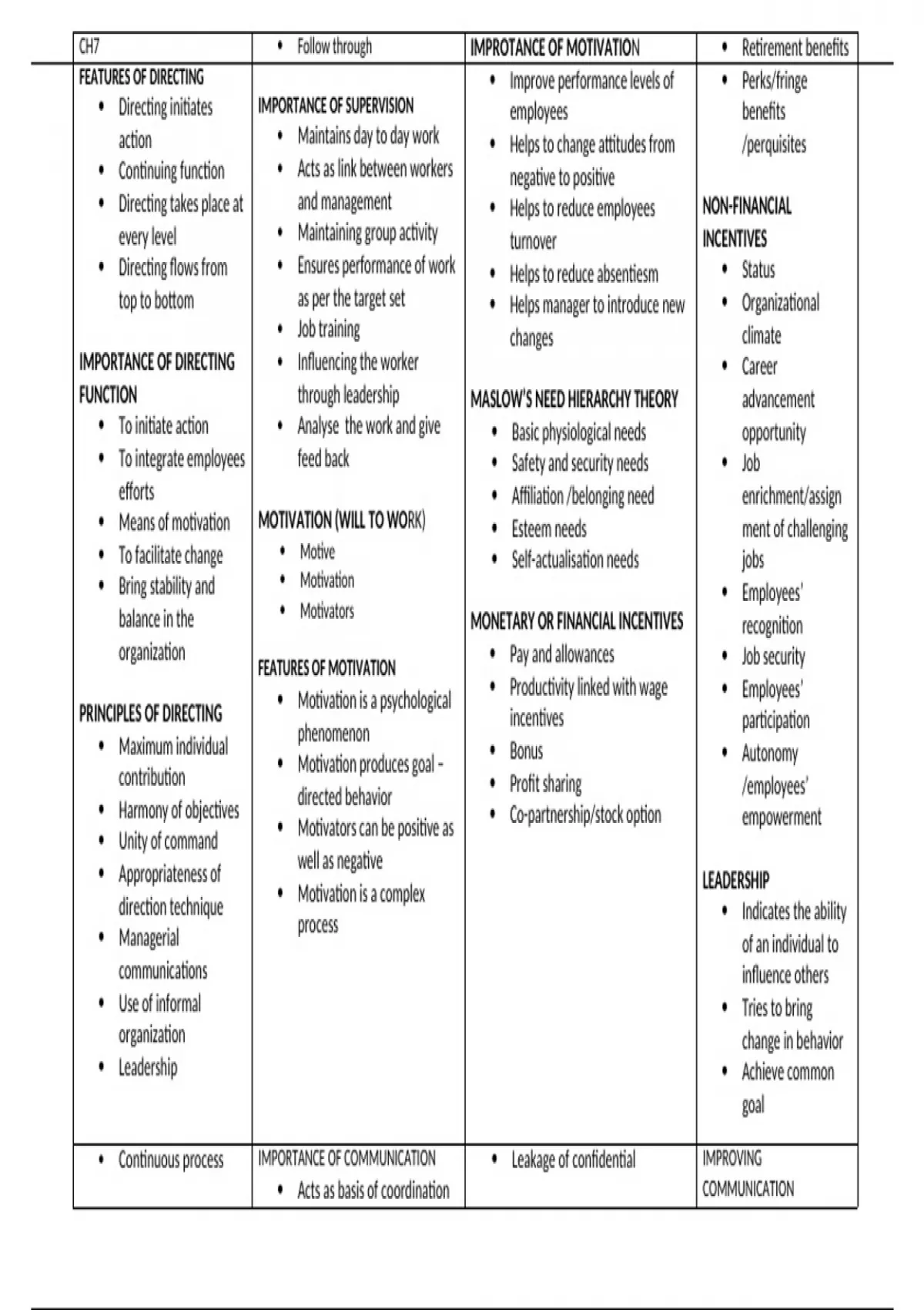 Directing flows from Ensures performance of work Helps to reduce absentiesm Status
