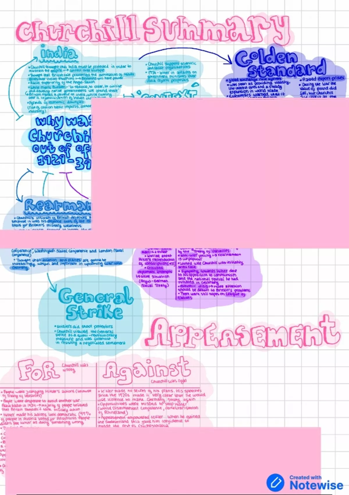 This is a document that contains summary on such topics as India matter, Golden standard, Abdication of the King, matter of rearmament, appeasement and why Churchill became a Prime Minister. The document is colourfull and presents information well. The notes are perfect as a last minute preparation to the examination to remind yourself some key points on topic and interesting facts. This could be specifically useful as a preparation to the 30-marker question, which could be on any of topics mentioned above