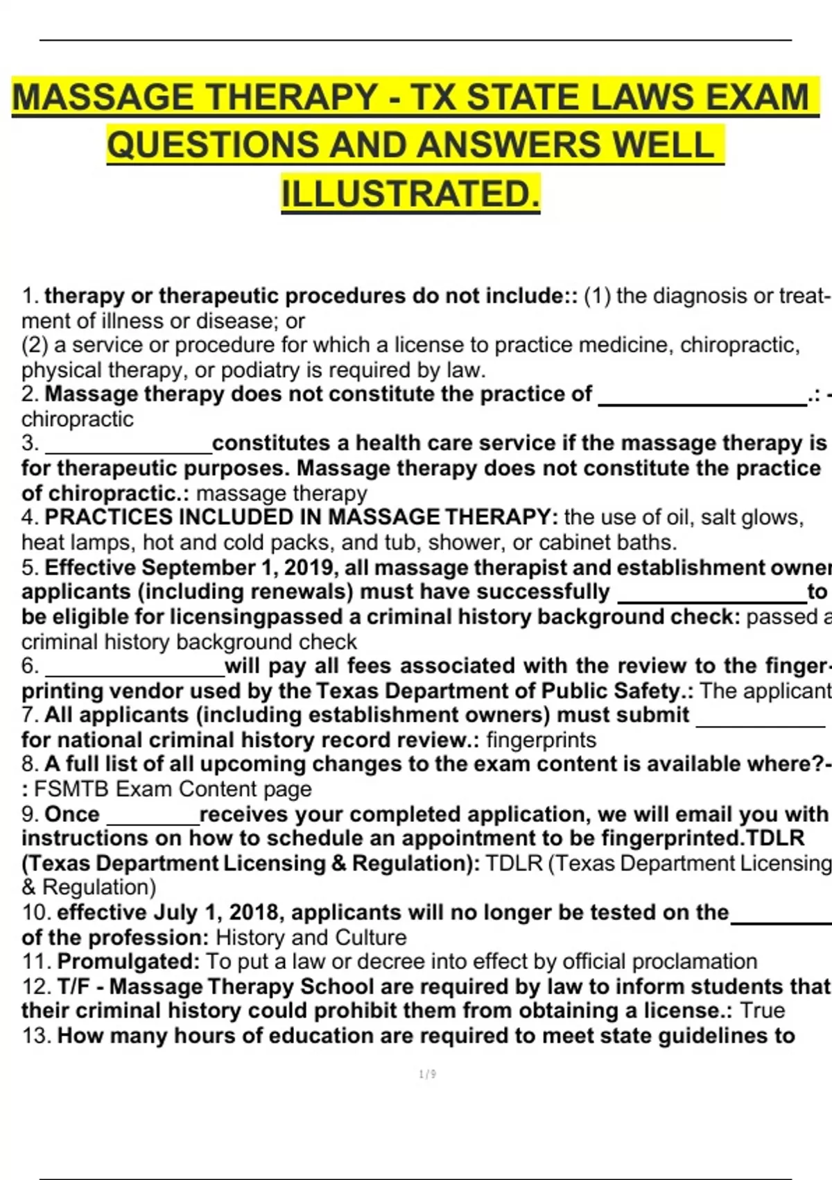 MMASSAGE THERAPY - TX STATE LAWS EXAM QUESTIONS AND ANSWERS WELL ILLUSTRATED.MASSAGE THERAPY - TX STATE LAWS EXAM QUESTIONS AND ANSWERS WELL ILLUSTRATED.MASSAGE THERAPY - TX STATE LAWS EXAM QUESTIONS AND ANSWERS WELL ILLUSTRATED.ASSAGE THERAPY - TX STATE LAWS EXAM QUESTIONS AND ANSWERS WELL ILLUSTRATED.