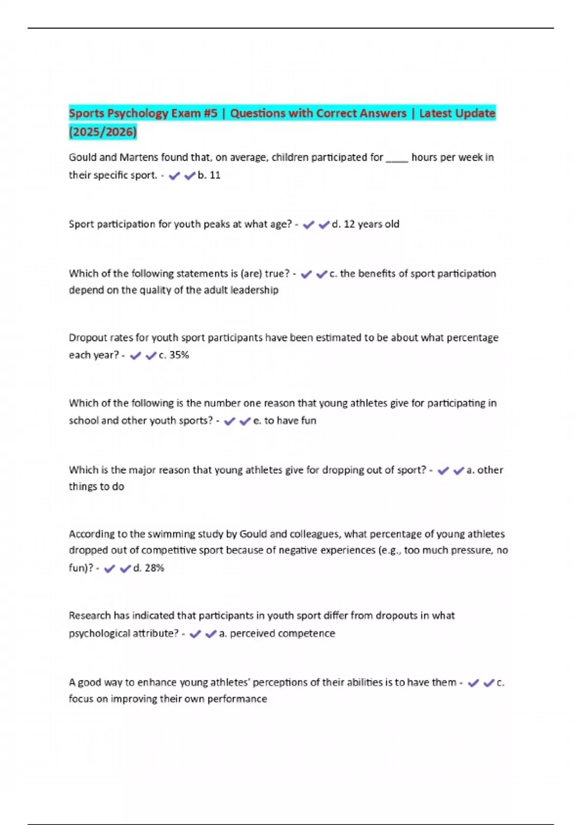 BUNDLE FOR Sports Psychology EXAMS | ALL Questions with Correct Answers | Verified Solutions