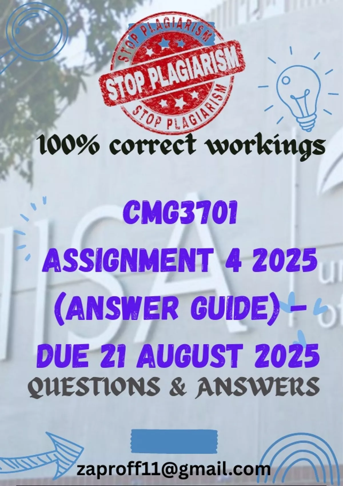 CMG3701 Assignment 4 2025 (Answer Guide) - Due 21 August 2025 Contents Question 1 2 1.1 Concept of loco parentis and Specific Duties of Care 2 1.2 Analysis of Mr Dlamini’s Decision in Light of Loco Parentis 2 1.3 General Duty of Supervision vs Specific Duty under Loco Parentis 2 1.4 Audi Alteram Partem Rule and Its Significance 3 1.5 Violation of the Audi Alteram Partem Rule by Mr Dlamini 3 1.6 Balancing Safety and Procedural Fairness 4 Question 2 4 2.1 Definition of “Conflict of Learners” in a Disciplinary Context 4 2.2 Handling Lerato’s Confession of Peer Pressure: A Practical Approach 5 2.3 Culpability Considerations and Disciplinary Outcomes 5 2.4 Ultra Vires vs Intra Vires in Context of School Leadership 6 2.5 Was Mr Dlamini’s Action Ultra Vires or Intra Vires? 6 2.6 Clauses Likely Bypassed and Proper Intra Vires Actions 7 Question 3 8 3.1 Core Rights of Learners Referenced by Mr and Mrs Ncube 8 3.2 Application of Procedural Fairness under BELA Principles 8 3.3 Legal Complexities of Demanding Payment for the Broken Window 9 3.4 Evaluation of the “Zero-Tolerance” Approach 10 Question 4 10 4.1 Definition of “Violence in Schools” and Application to Sipho’s Case 10 4.2 Underlying Factors and Immediate Alternative Intervention 11 4.3 Limitations of Punitive Measures and Broader Strategies 11 4.4 Long-Term Impact of Mr Mkhize’s Approach vs Supportive Discipline 12 4.5 Purpose of the Department of Basic Education’s Progression Policy 13 4.6 Justifying Retention under the Progression Policy 13 4.7 Tension Between Academic Standards and the Progression Policy 13 References 14