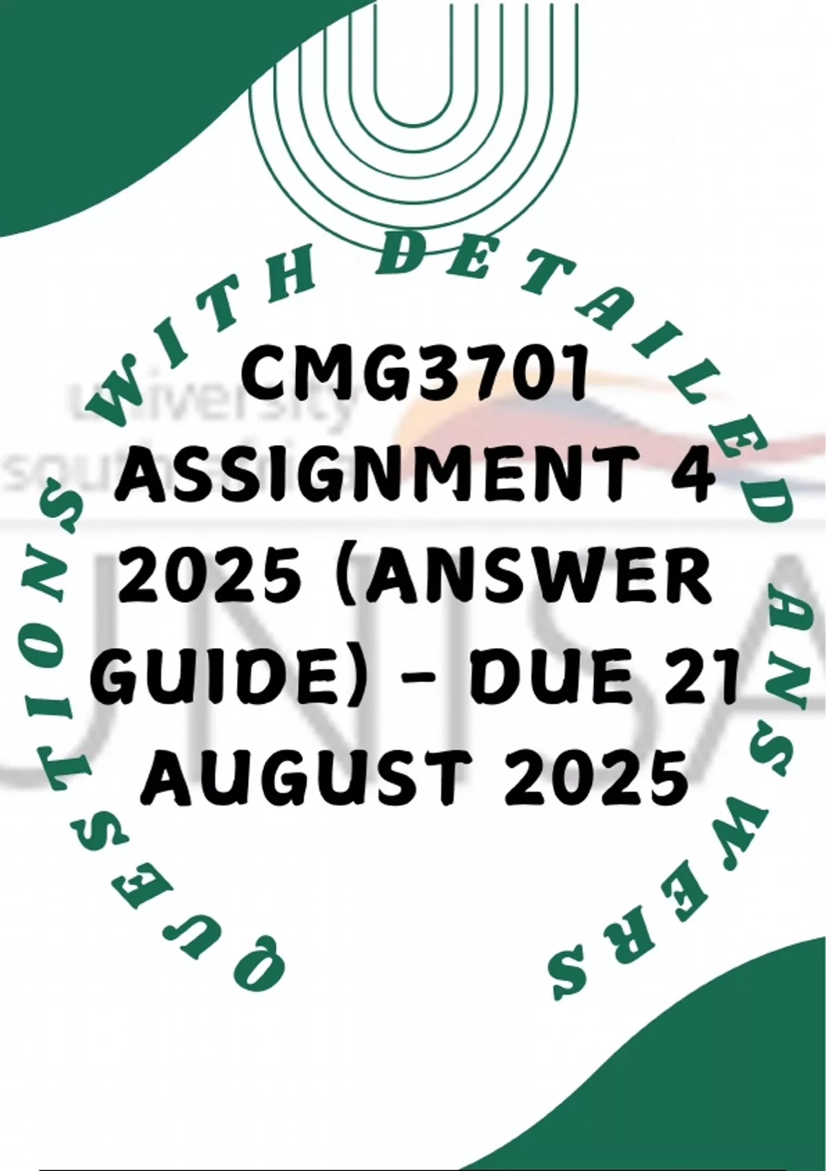 CMG3701 Assignment 4 2025 (Answer Guide) - Due 21 August 2025