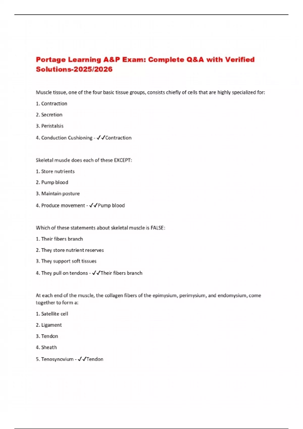 Portage Learning A&P Exam: Complete Q&A with Verified Solutions-2025/2026