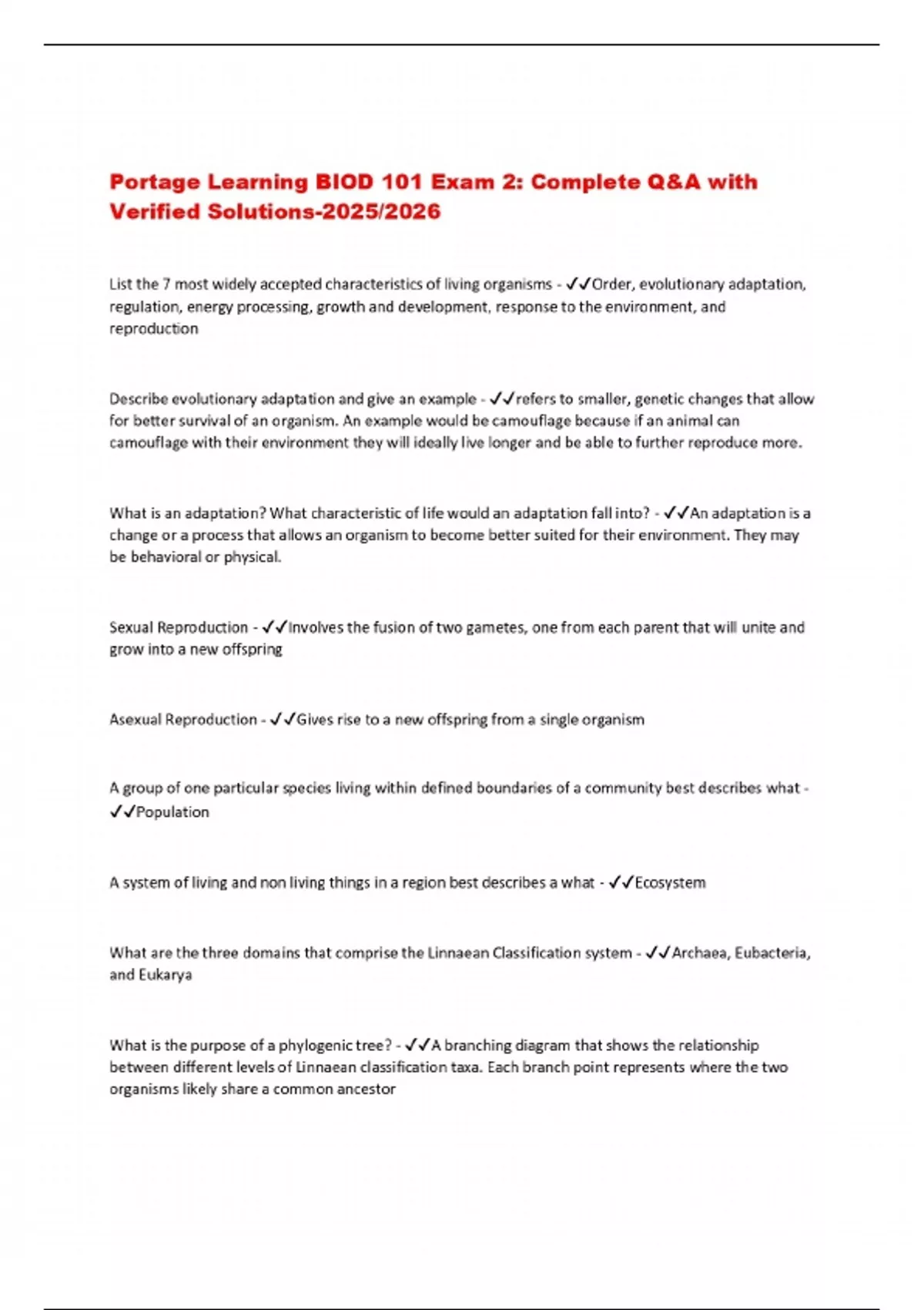 Portage Learning BIOD 101 Exam 2: Complete Q&A with Verified Solutions-2025/2026