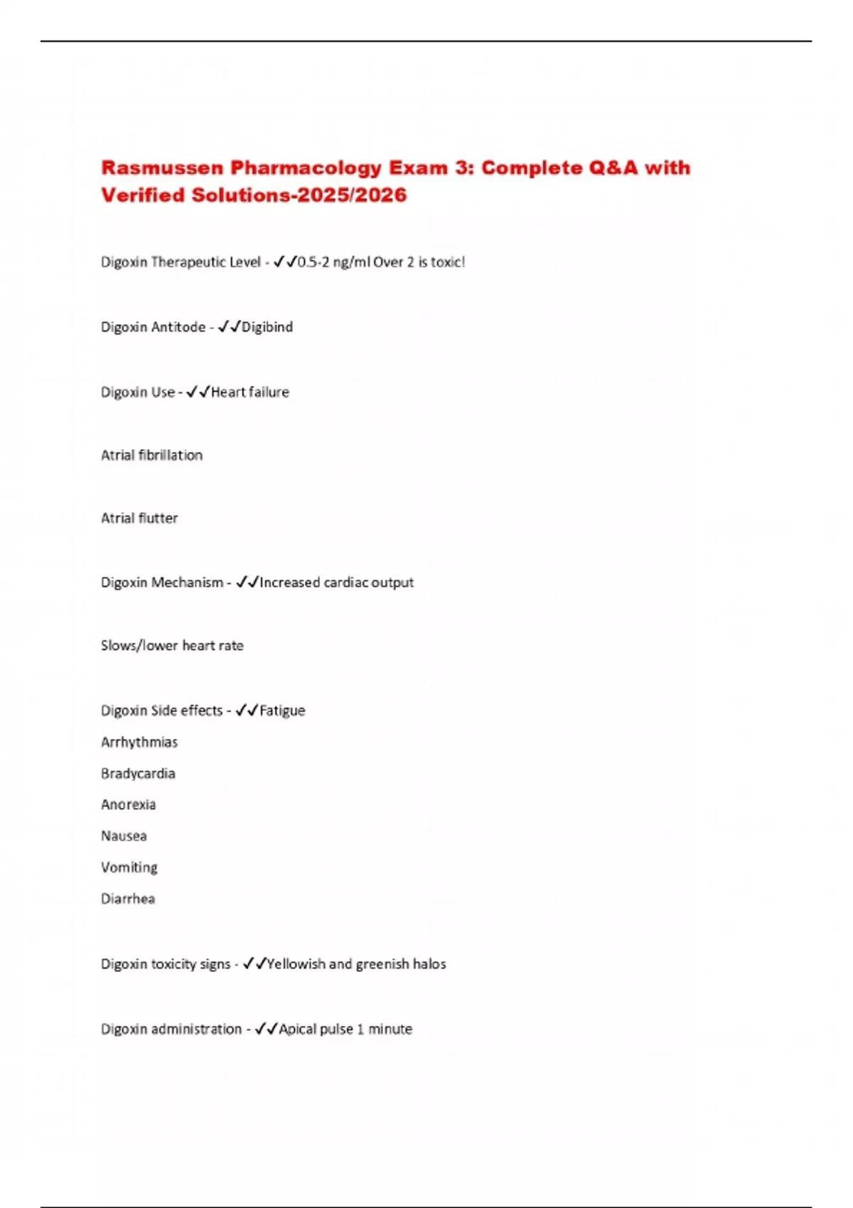 Rasmussen Pharmacology Exam 3: Complete Q&A with Verified Solutions-2025/2026